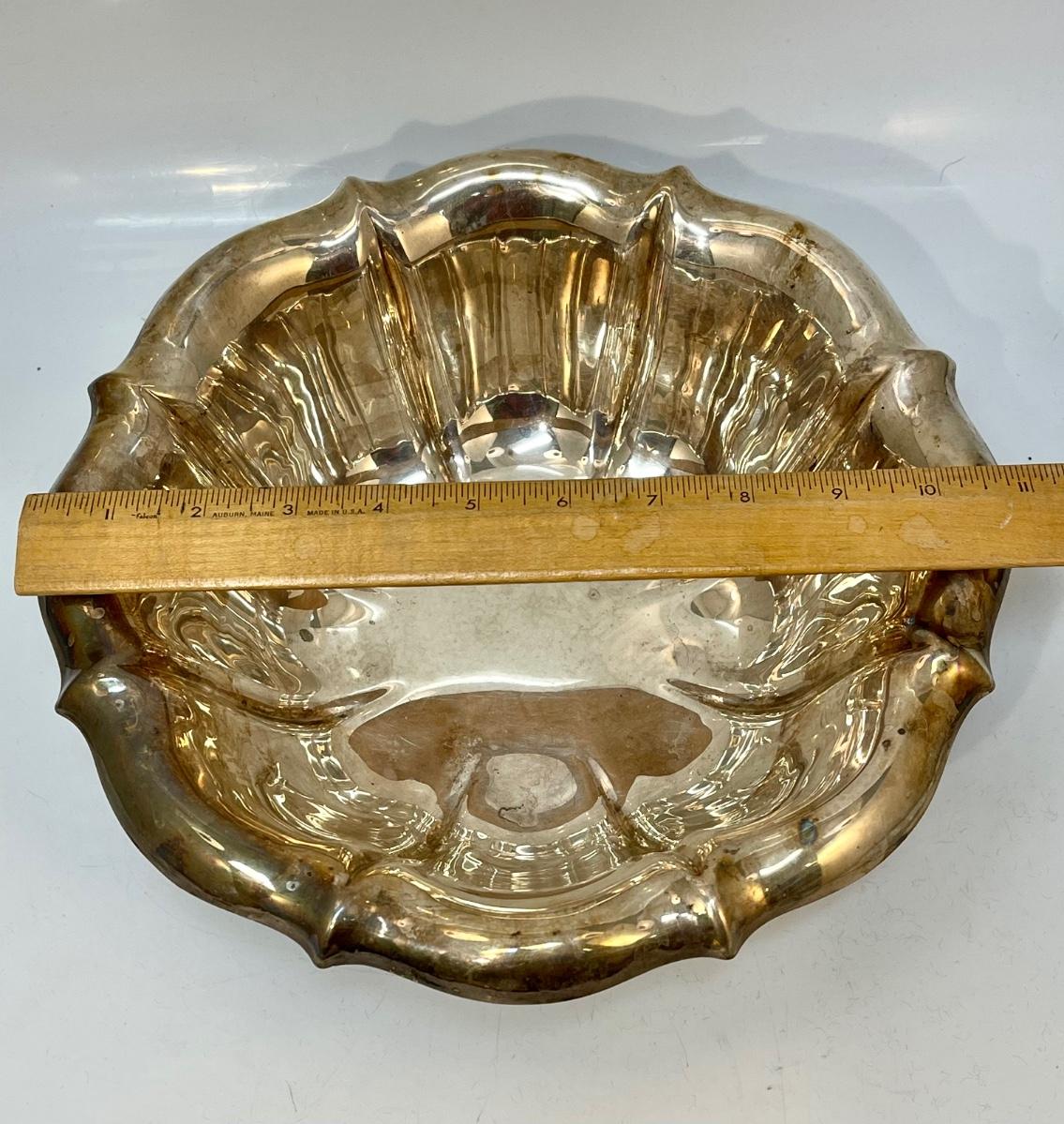 Vintage Gorham Silver Plated Fluted Scallop Serving Bowl. in good condition just needs to be polished. About 11" diameter. Stamped on the bottom.