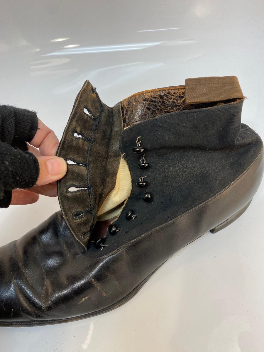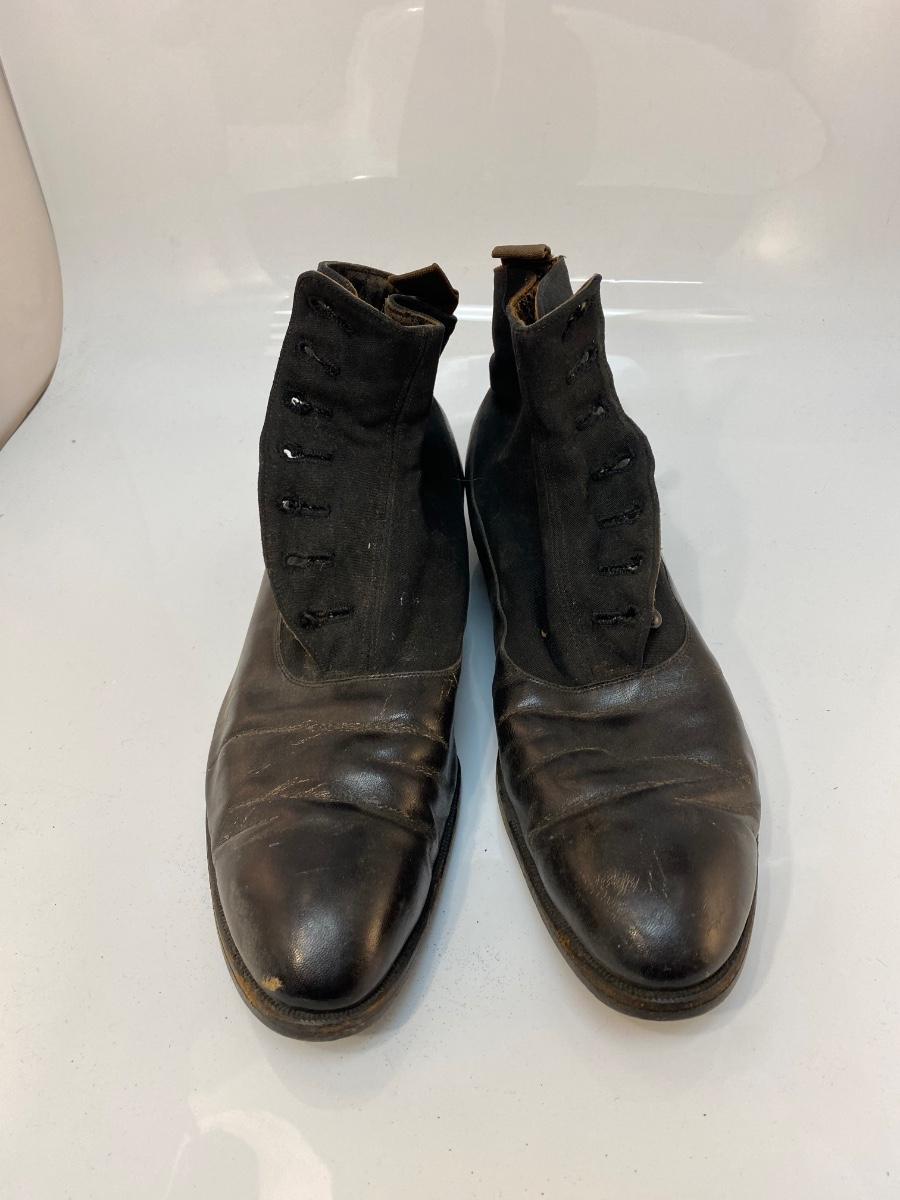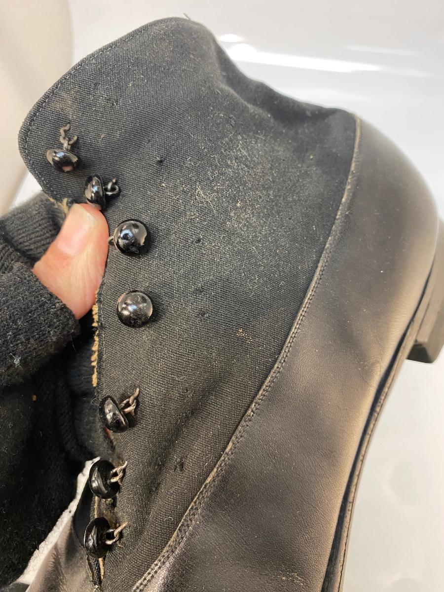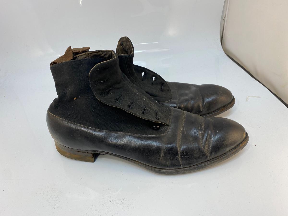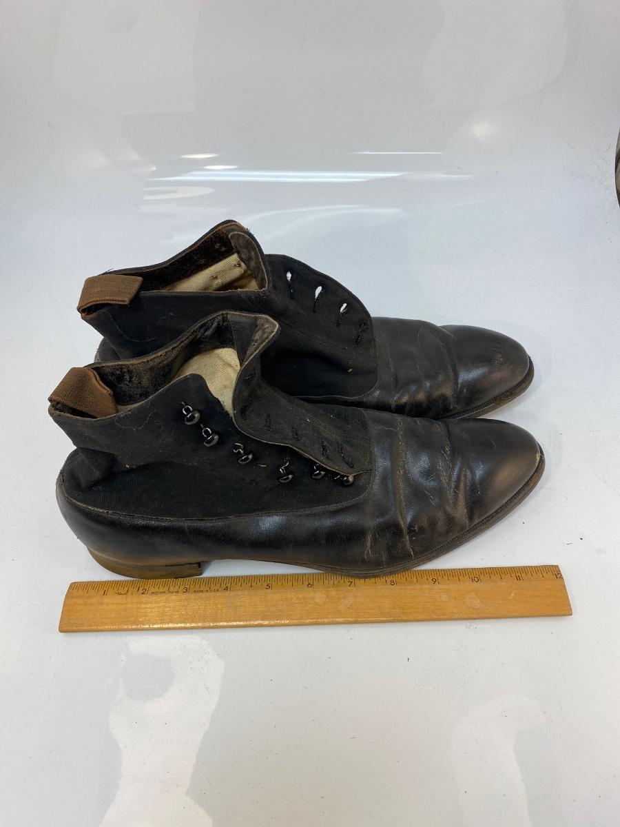 Antique Victorian Men's Black Boot Shoes Side Button. In vintage condition, obvious signs of wear but are displayable and probably wearable. Unsure size. No missing buttons but does look like the buttons may have been moved when looking at up close.