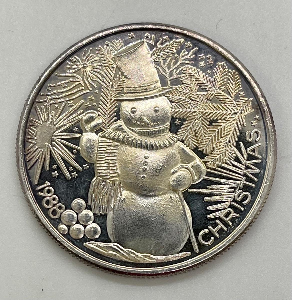 Christmas 1988 Snowman 1 Troy Oz .999 Fine Silver Collectible Coin Token. In good condition.