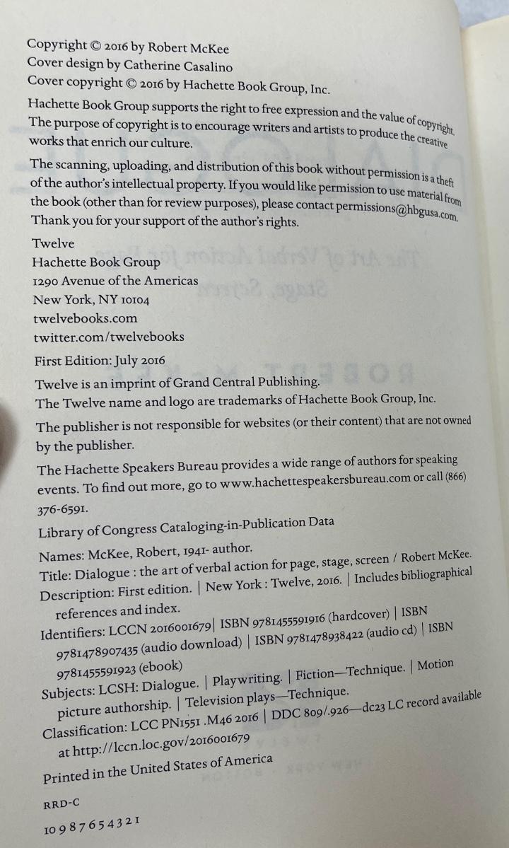 Hardback, by Robert McKee. Tips and techniques for writing dialogue. Good condition.