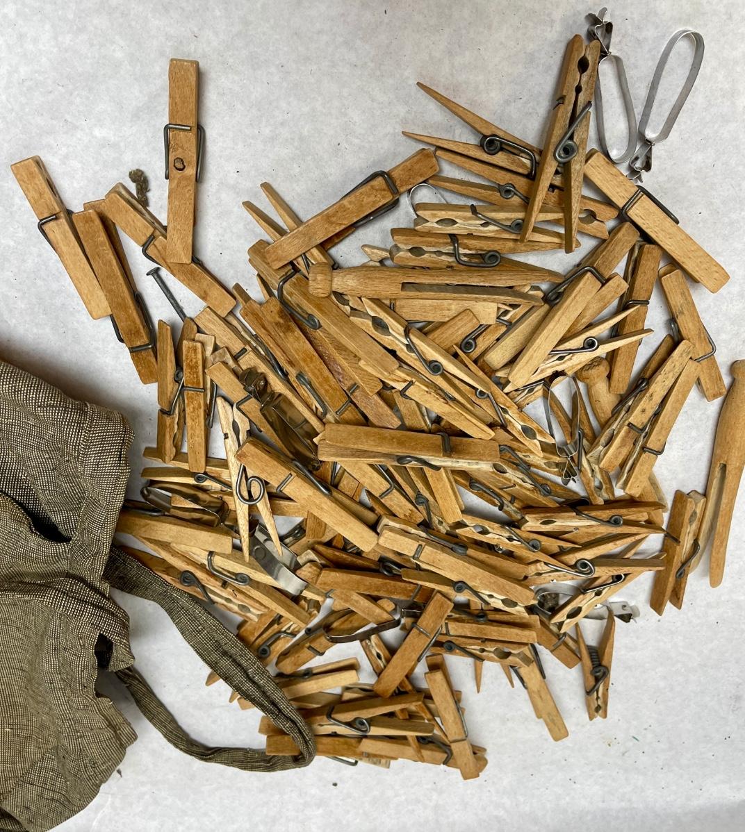 Bag could use a washing and see photos for clothespin condition, the pins look like they are all in good shape.