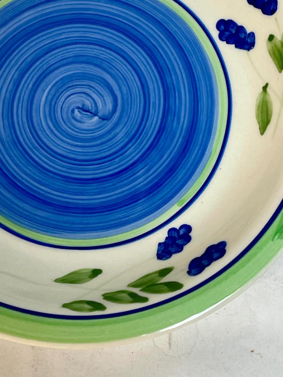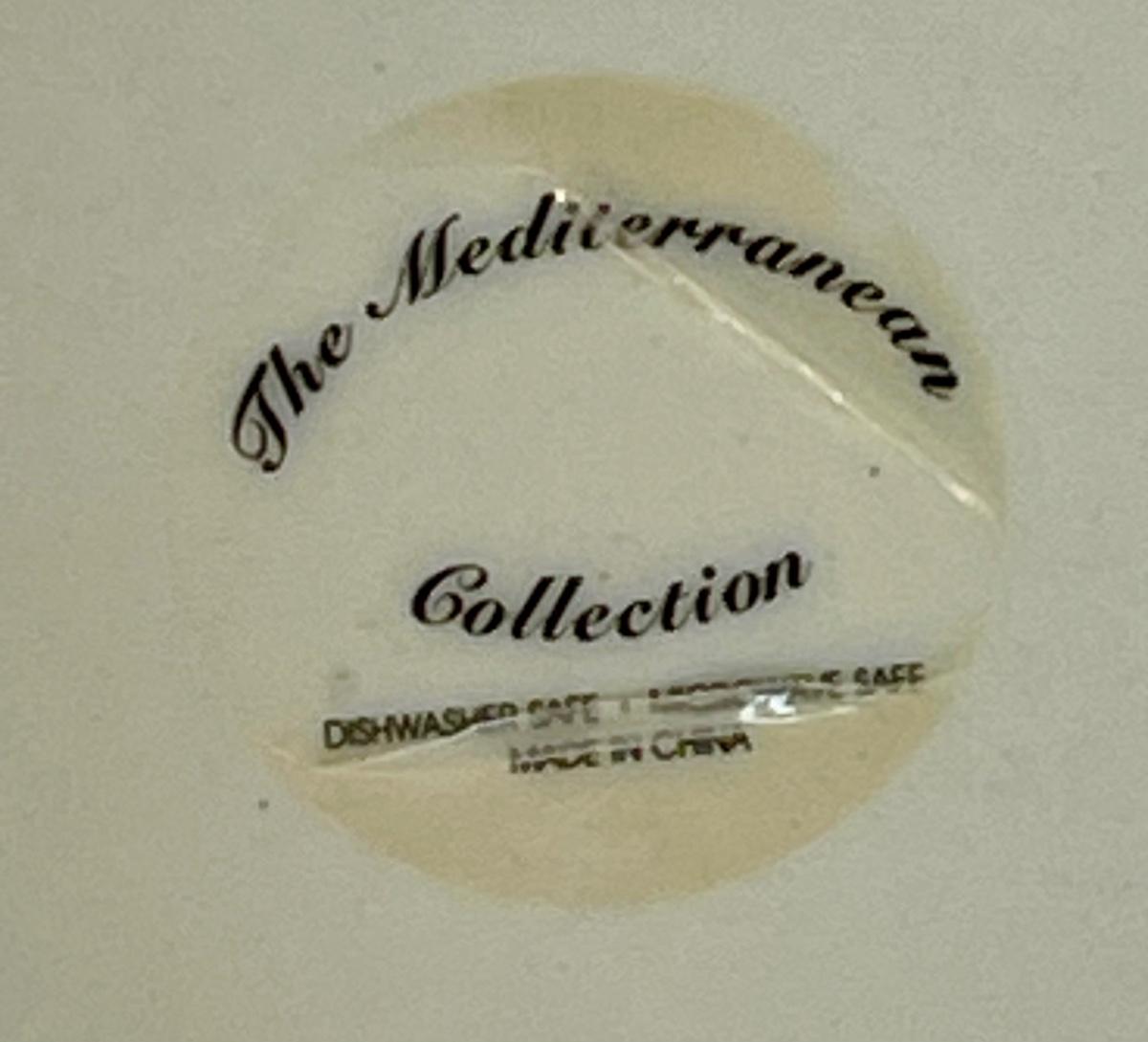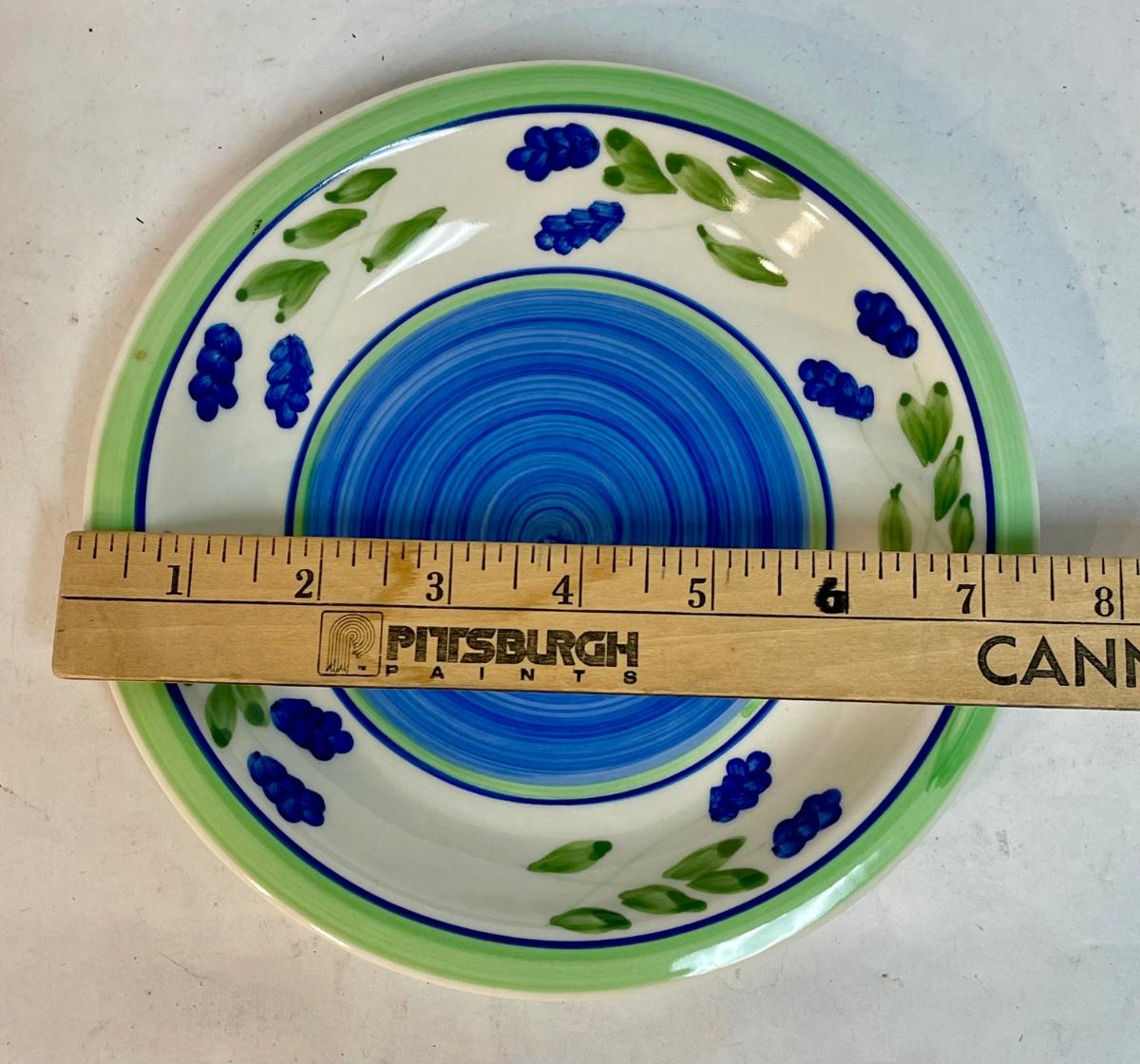 Ceramic plate from the Mediterranean Collection. Is dishwasher and microwave safe, but can also be used for display or as home decor. Approx. 7 1/2" across.