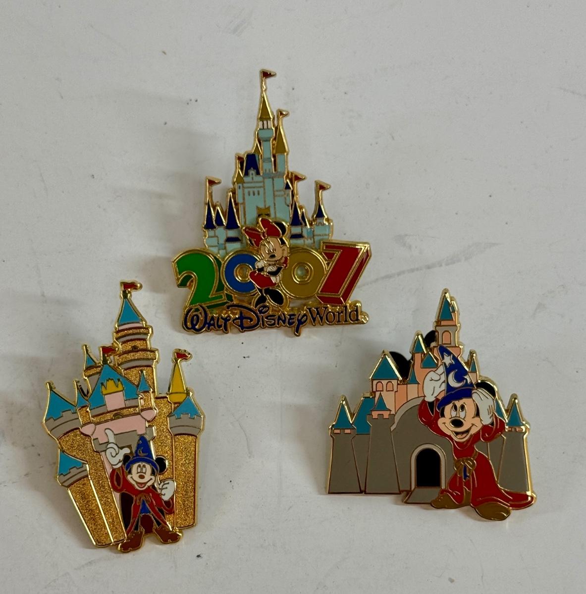 Lot of 3 Disneyland Disney Cloisonne Trading Pins 2007 Mickey & Castle