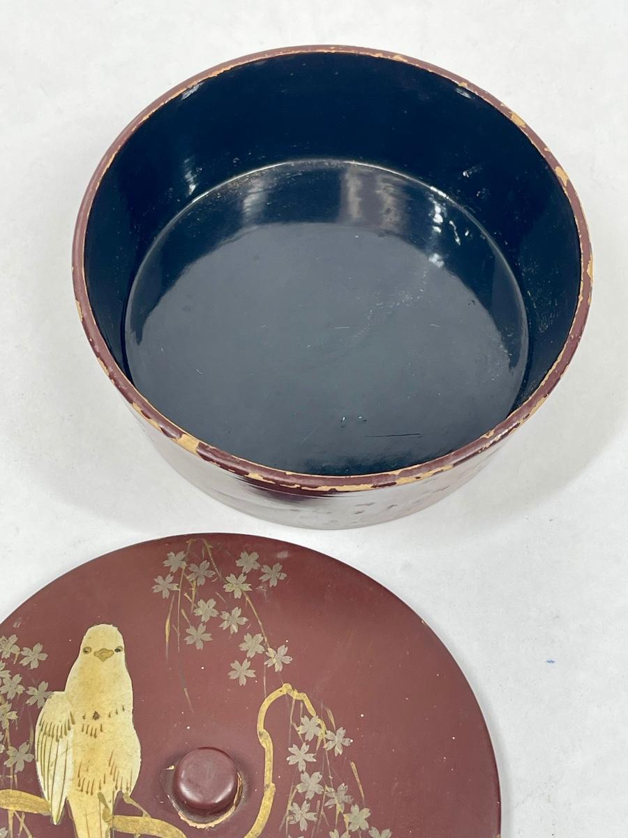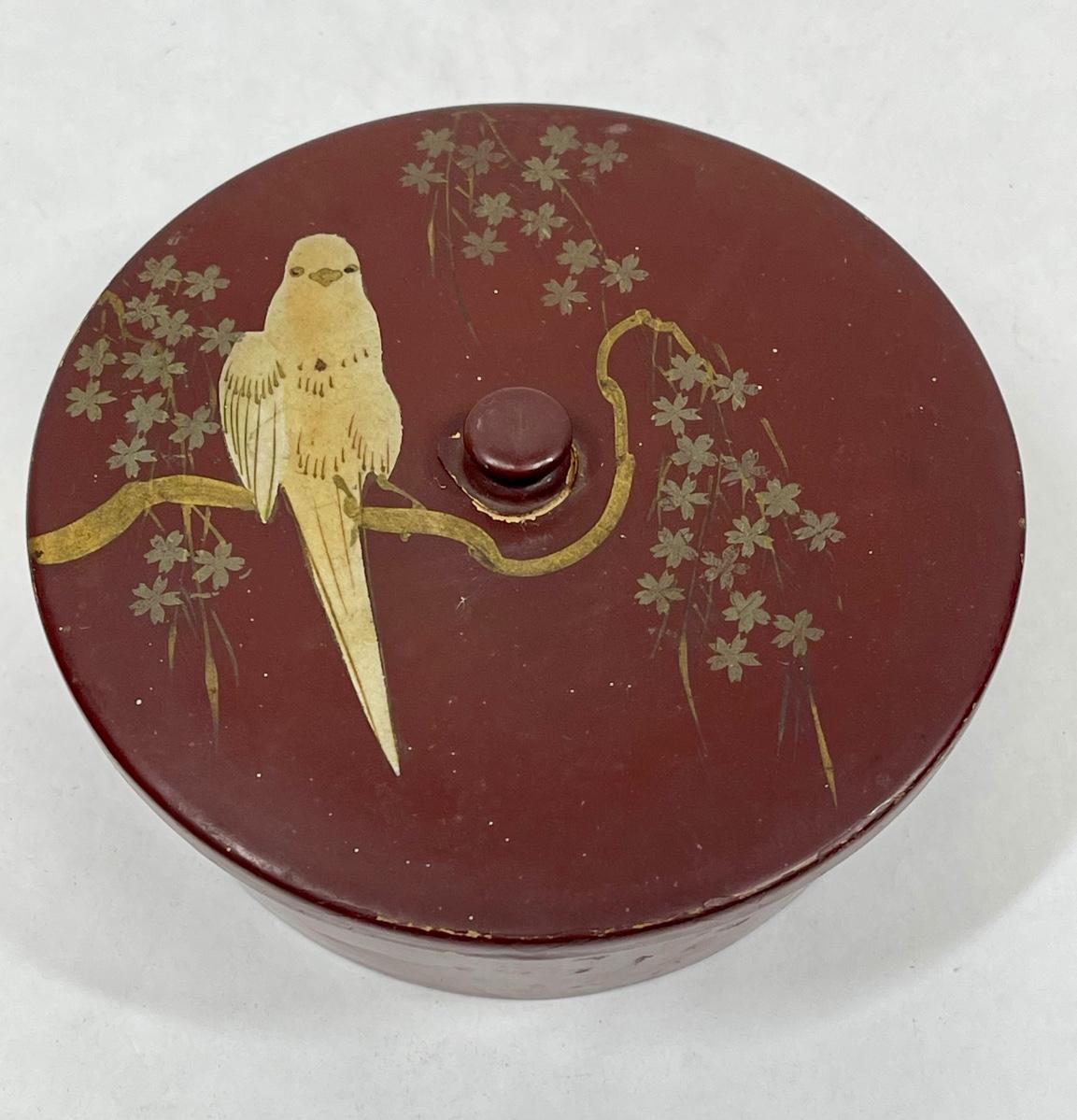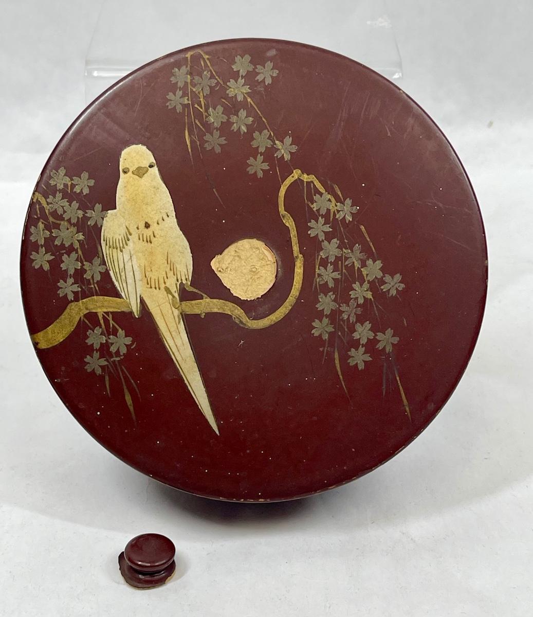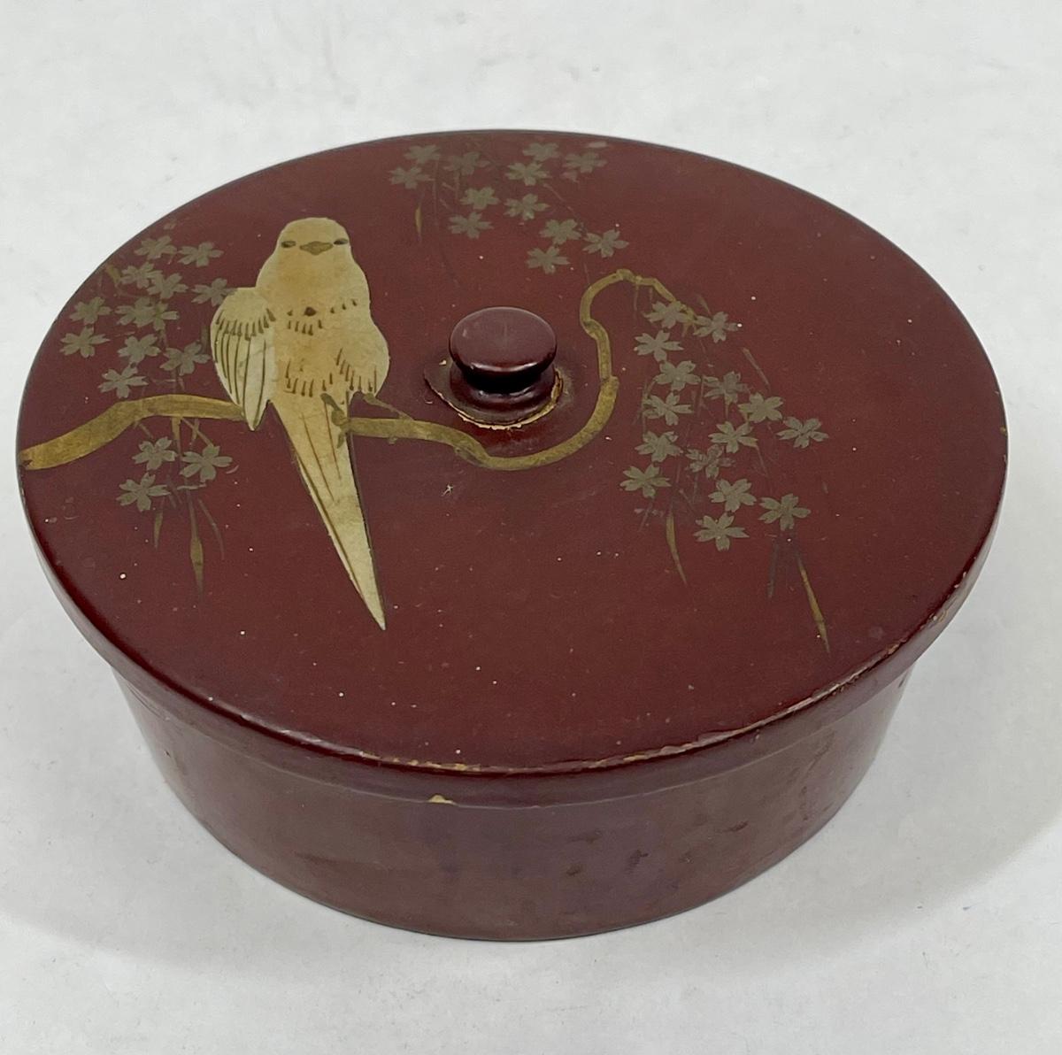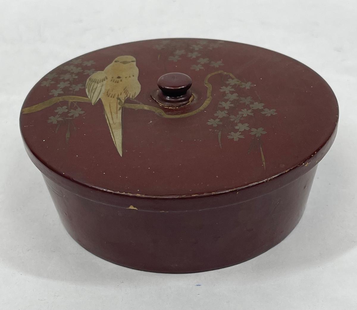 Antique Asian Lacquered Covered box with Parrot bird