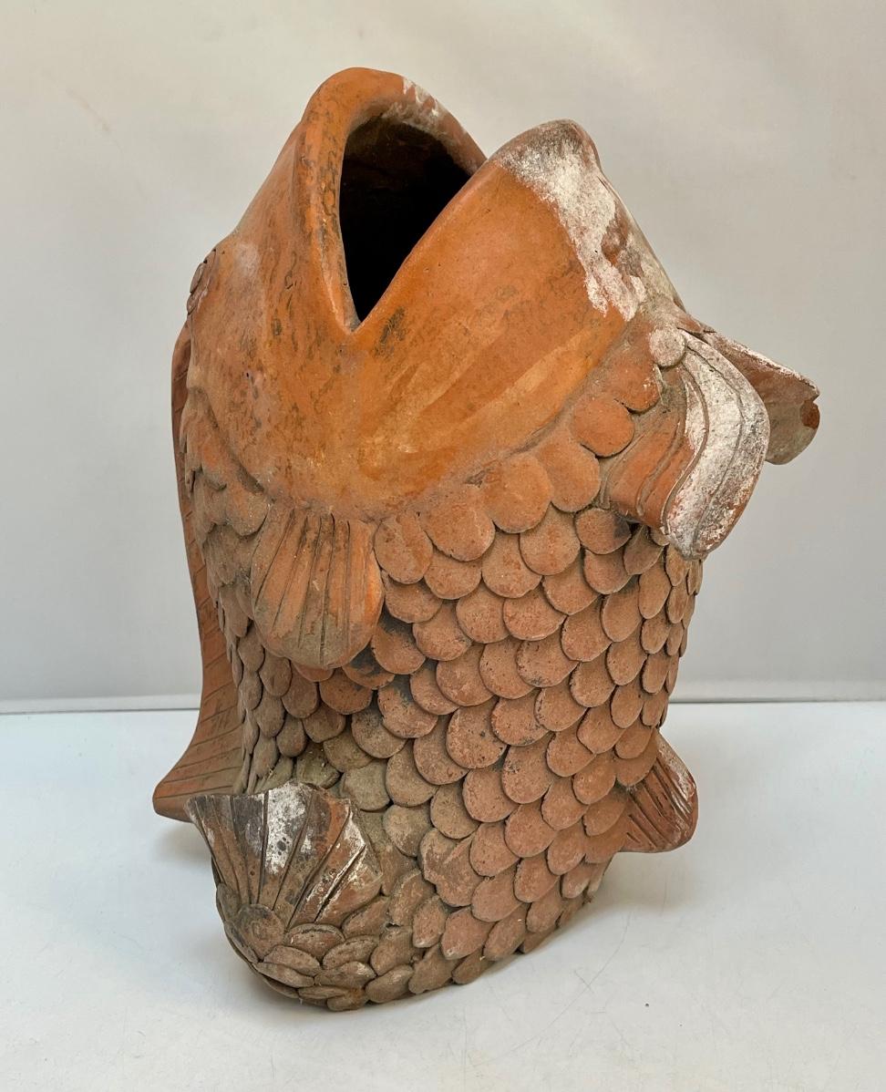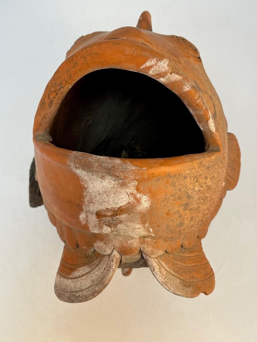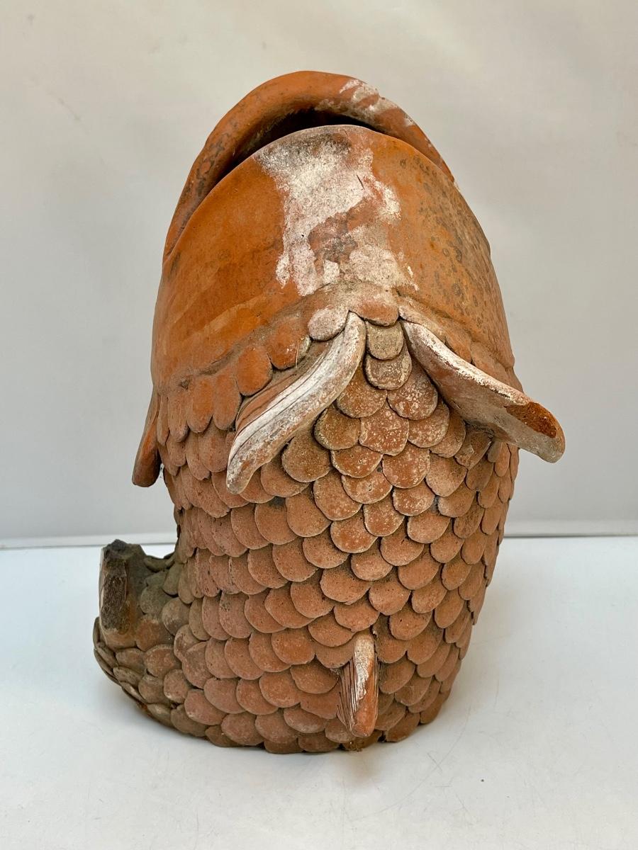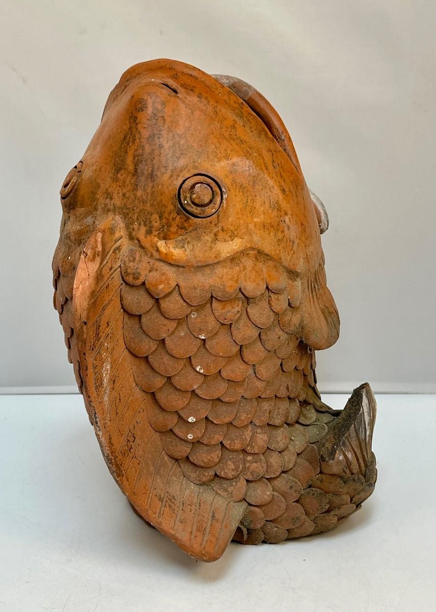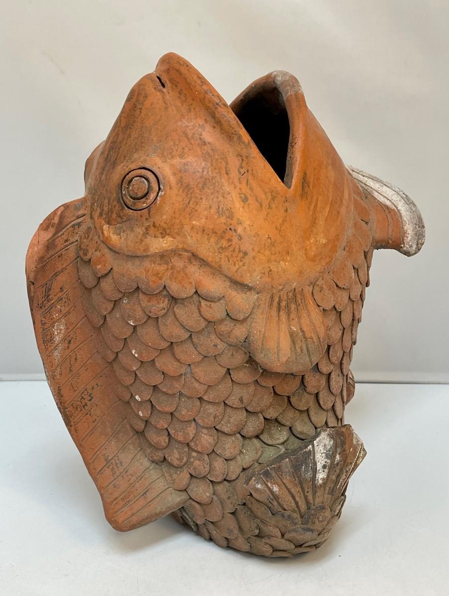 Terra Cotta Pottery Fish Garden Statue Planter Pot Open Mouth. Great details. In good, weathered condition. About 12" size.