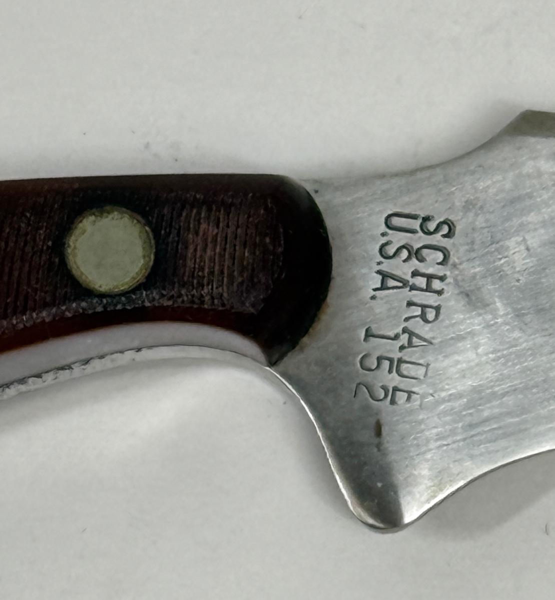 Vintage Schrade Cutlery Model 152 "Sharpfinger" Fixed Blade Hunting / Skinning Knife with Original Matching Genuine Leather Sheath