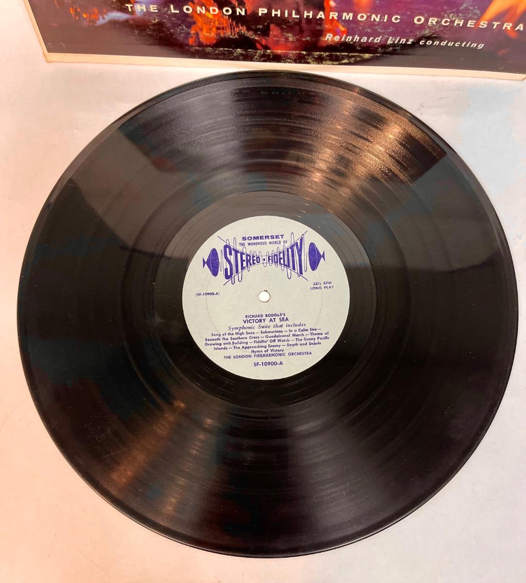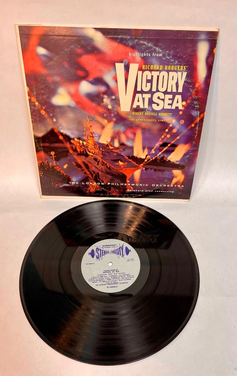 Music used in the 26-episode WWII TV series Victory at Sea. Released in 1952. Good used condition.