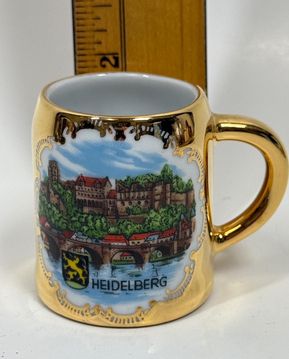 Kleiber Bavaria MIni Gołd Stein Shot Glass Souvenir from Heidelberg Germany 22K gold gilt