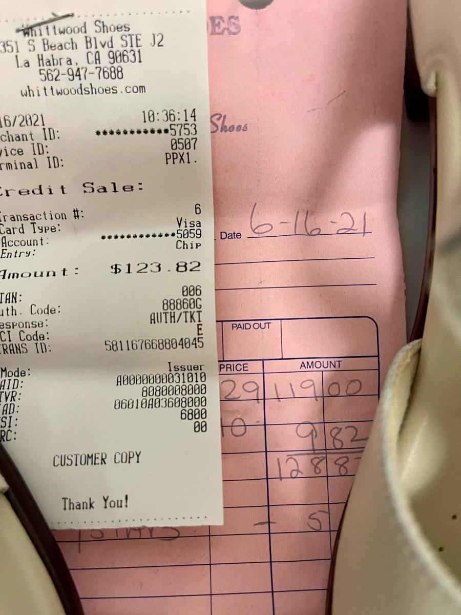 These shoes appear to be new, never worn. The receipt is inside box, owner paid $119.00 plus tax.