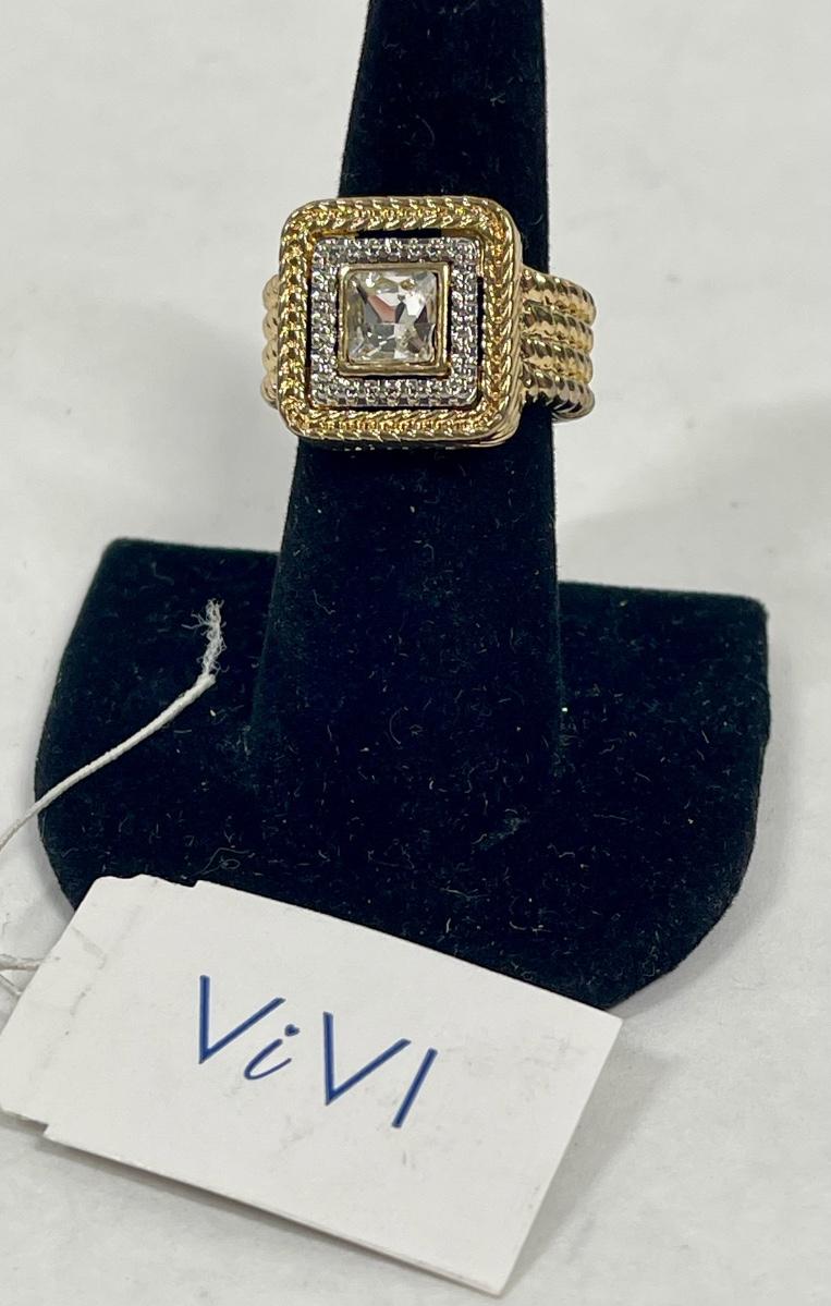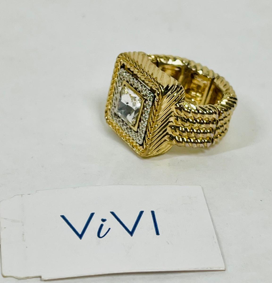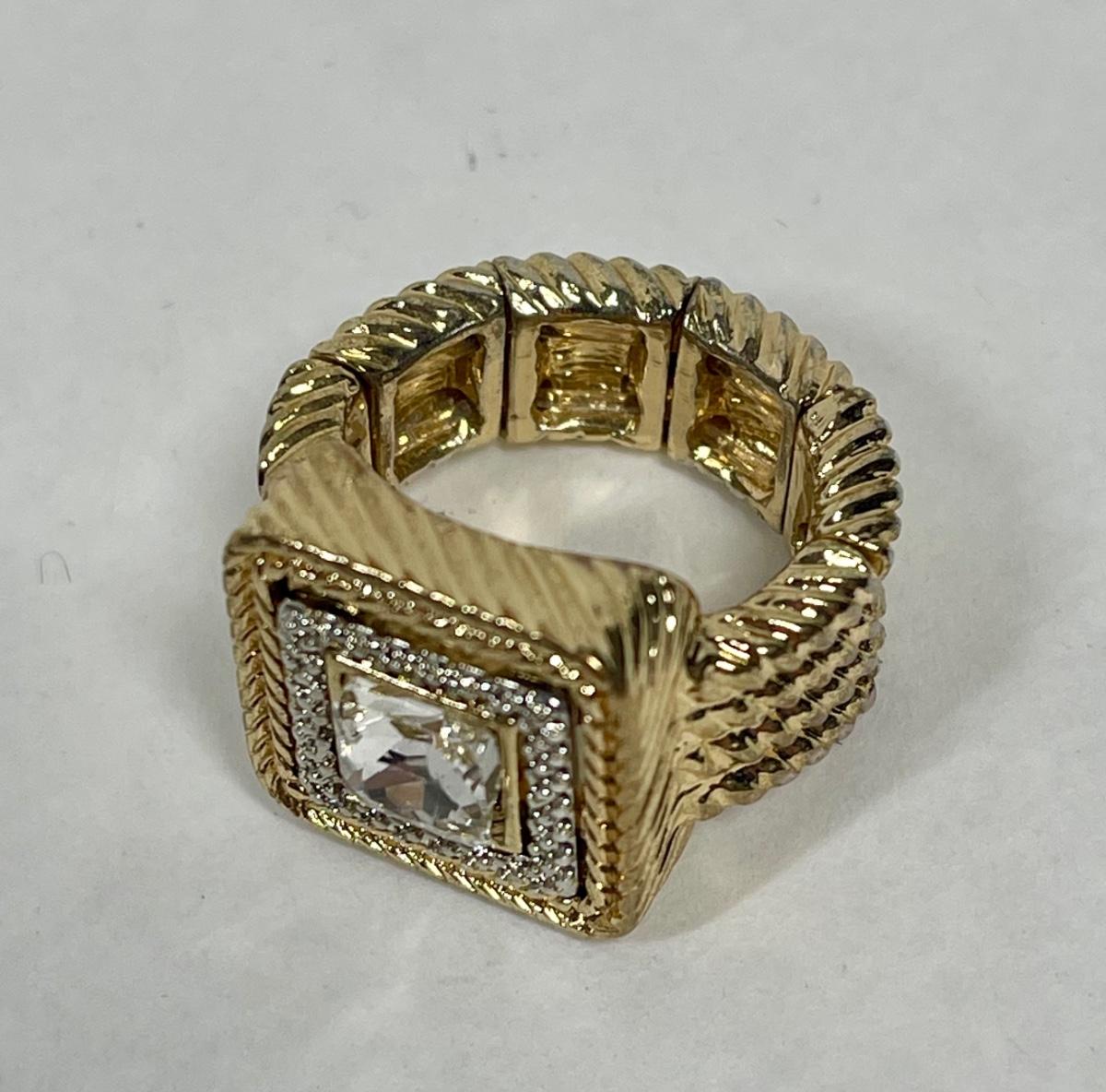 Gold-Tone Stretchy Ring with clear centerpiece stones