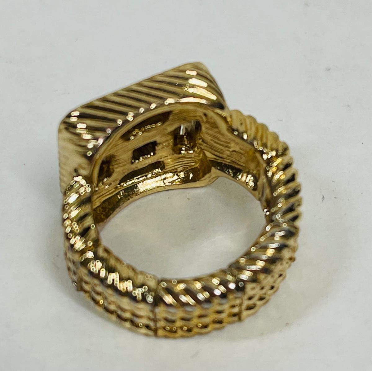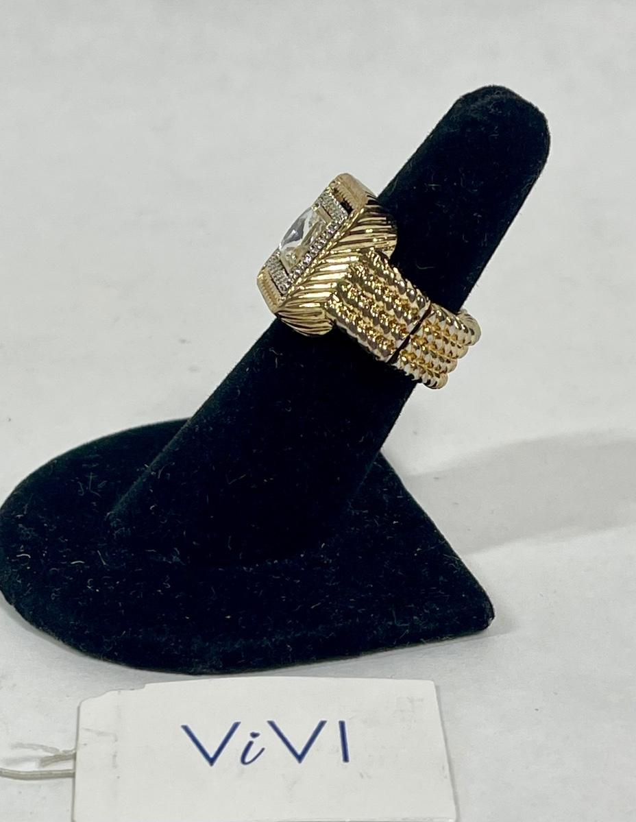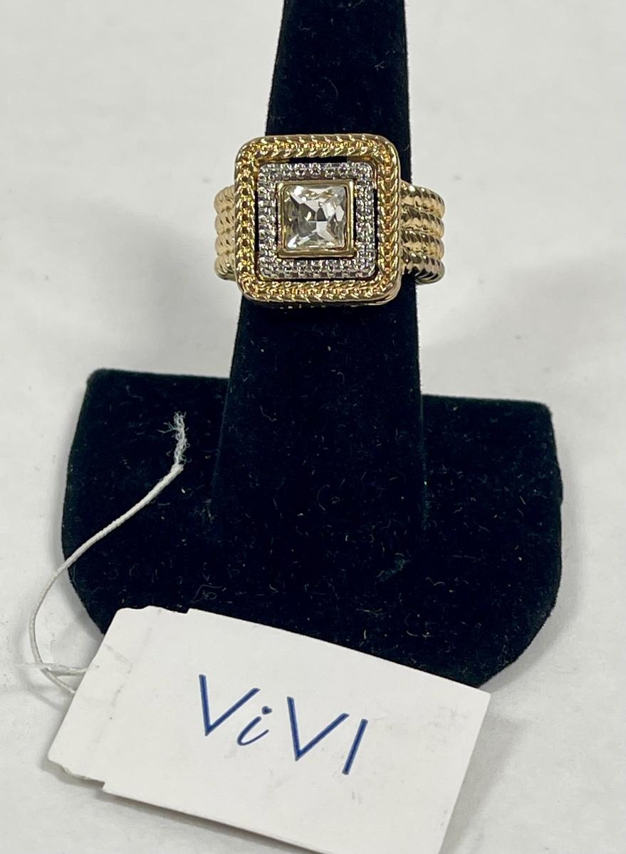 Gold-Tone Stretchy Ring with clear centerpiece stones