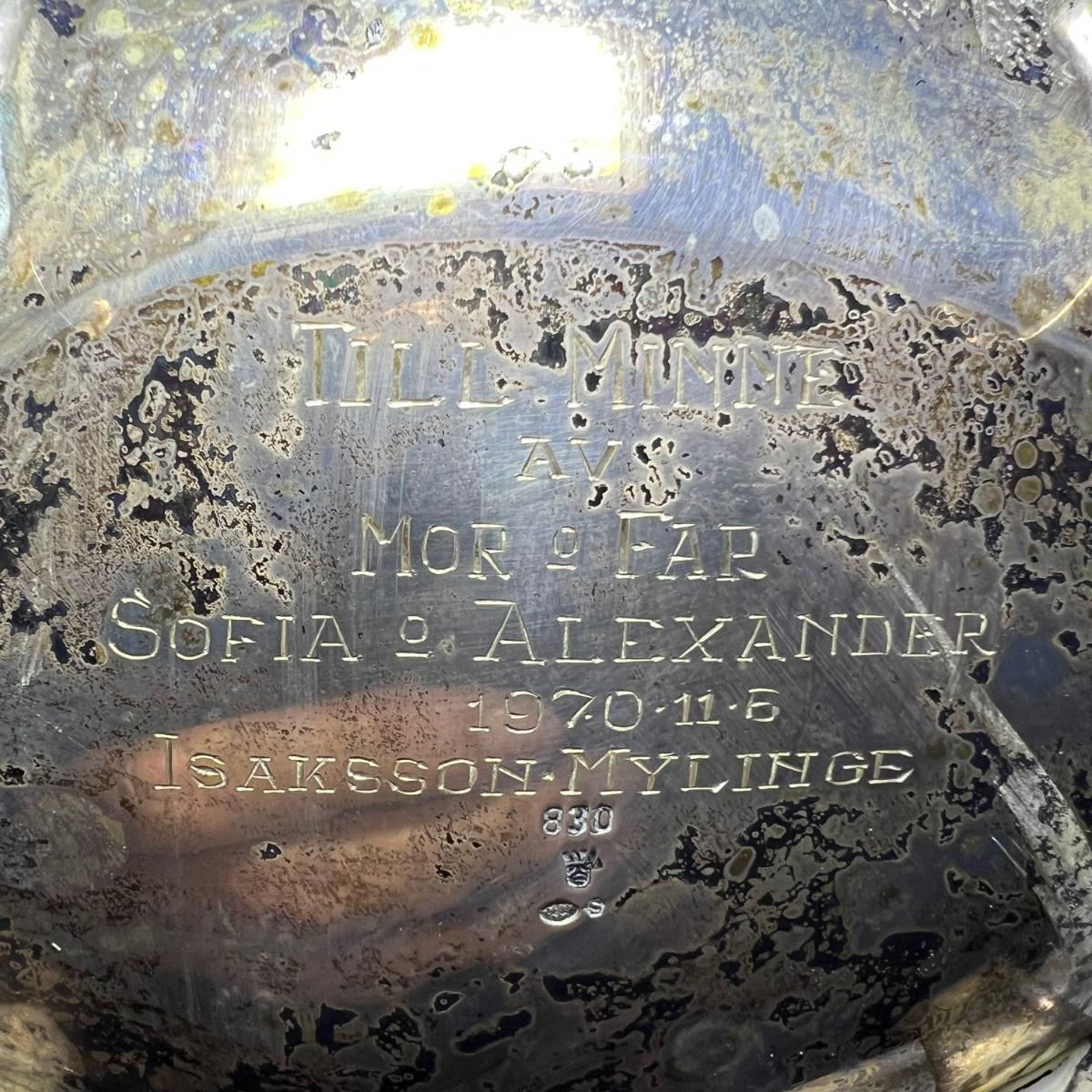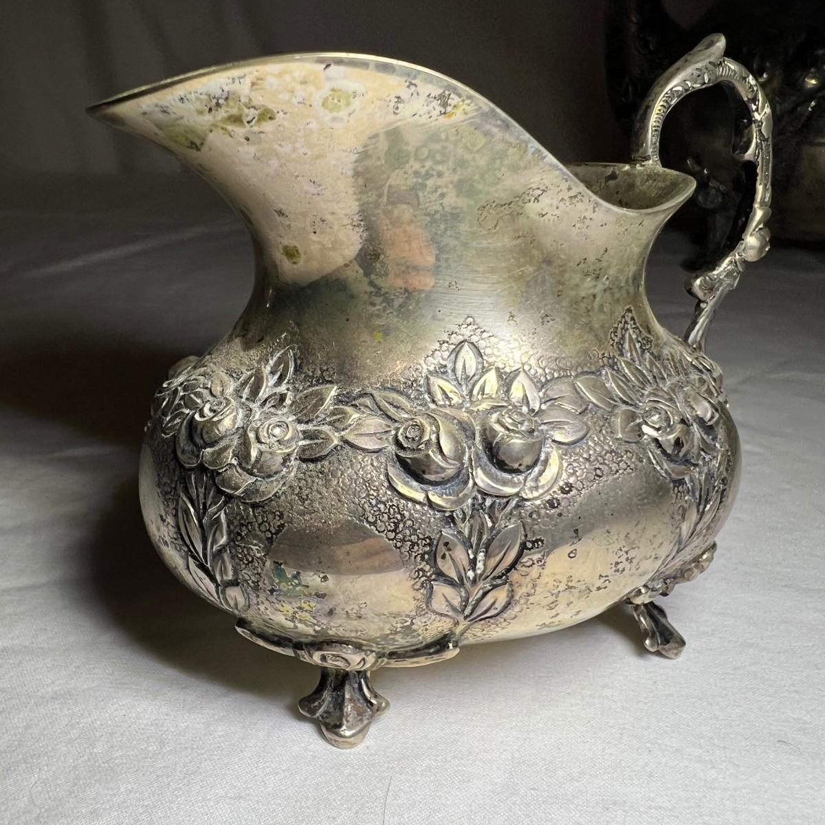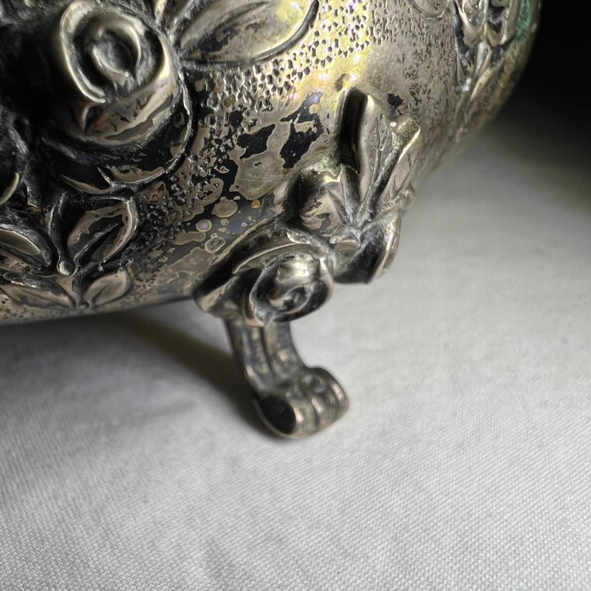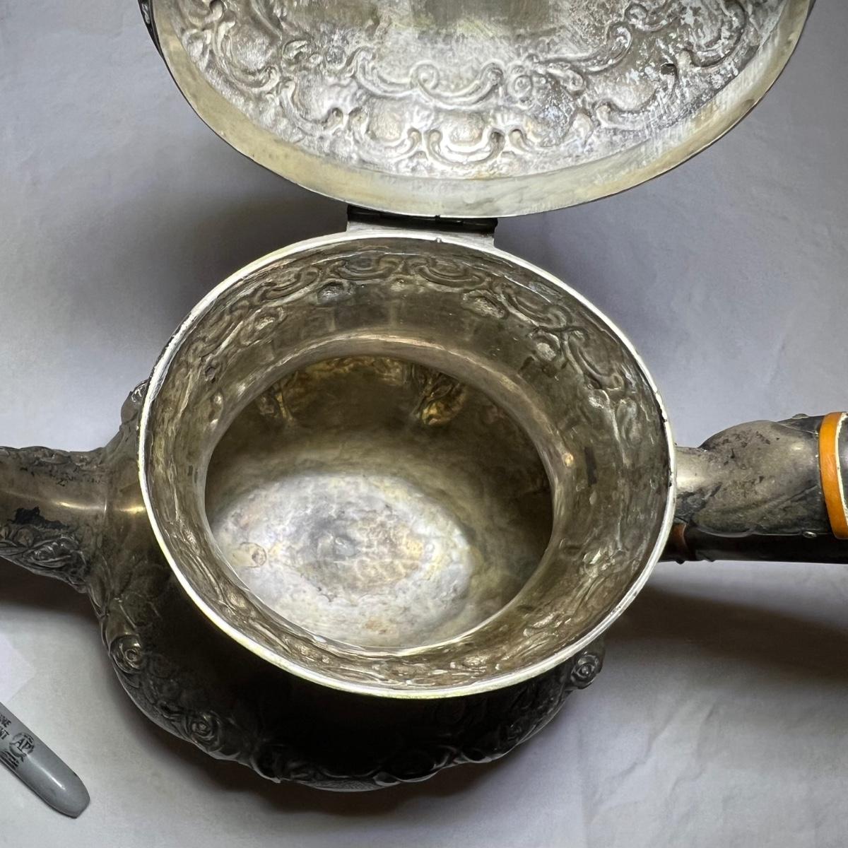 This precious silver set are all stamped 830 and likely from Sweden. Set includes a teapot, lidded sugar bowl and creamer.