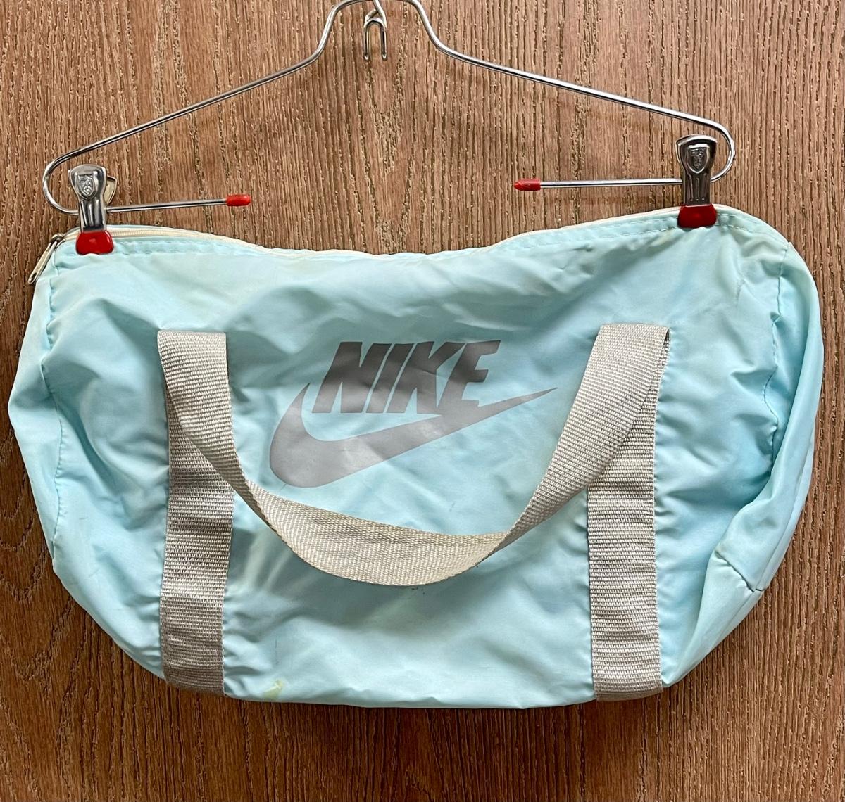 Nike Grey & Turquoise Blue Gym Bag. In fair condition. Light discoloration from use.
