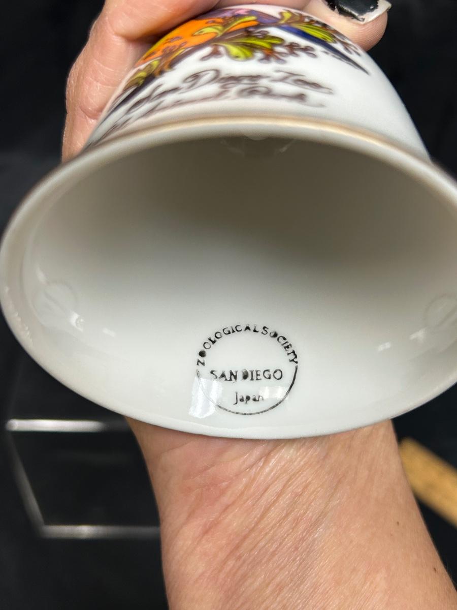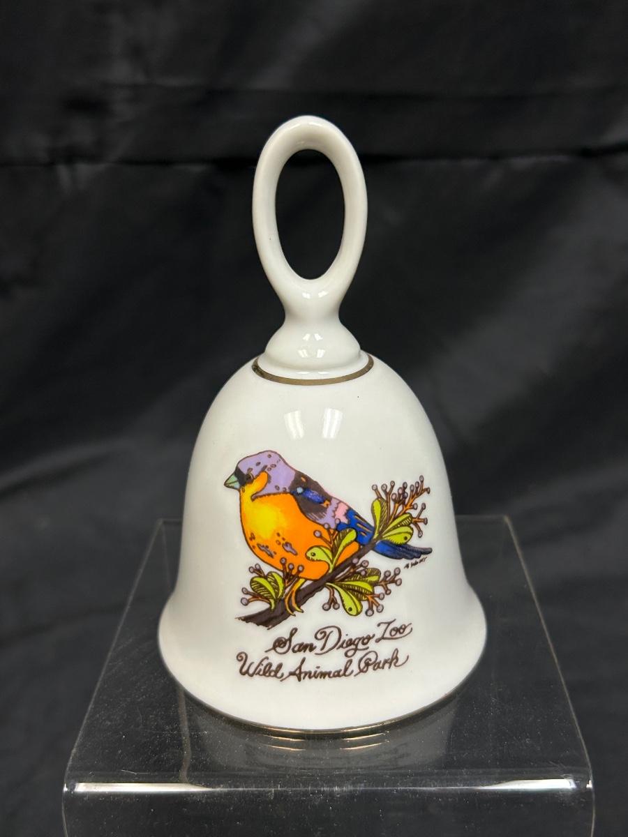 San Diego Zoo Wild Animal Park Souvenir Zoological Society Ceramic Bell. In good condition. Features a bird and butterfly on bell. The ringer piece inside is missing.