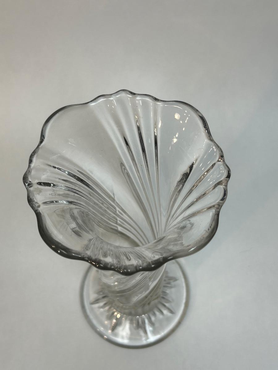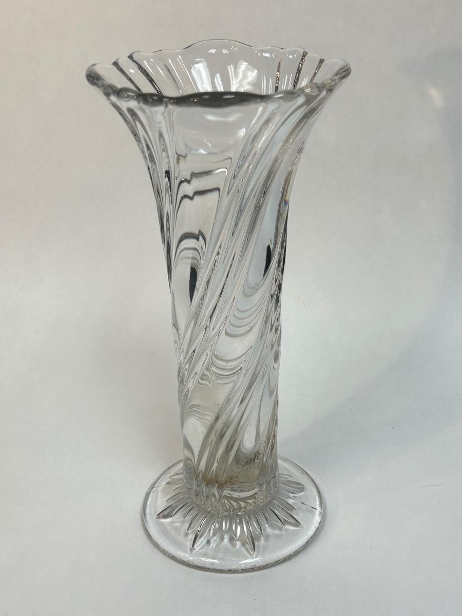 Clear Glass Fluted Swirl Flower Floral Vase. In good condition. Thick glass, no chips. About 12" size.