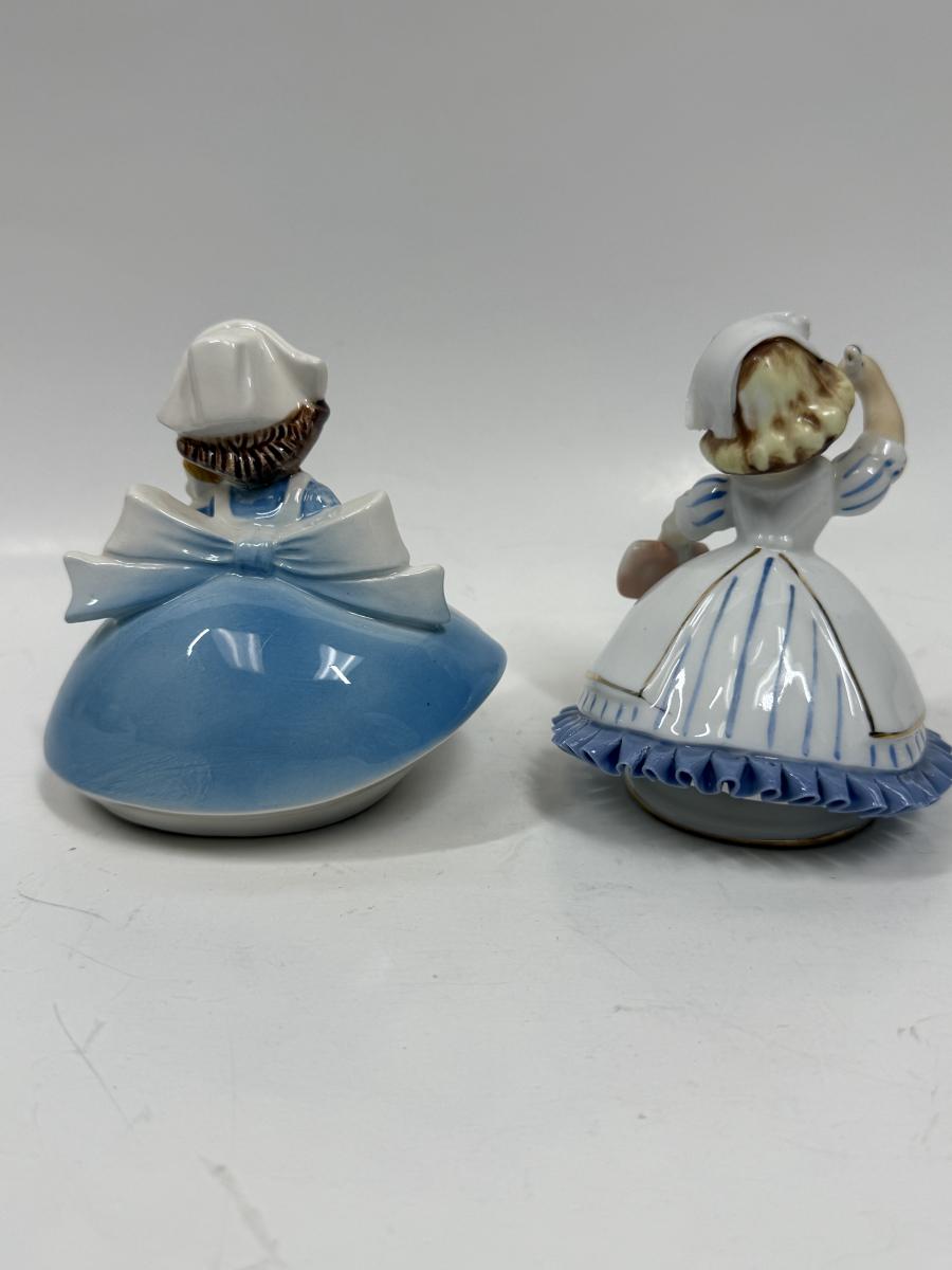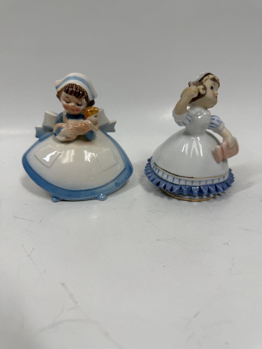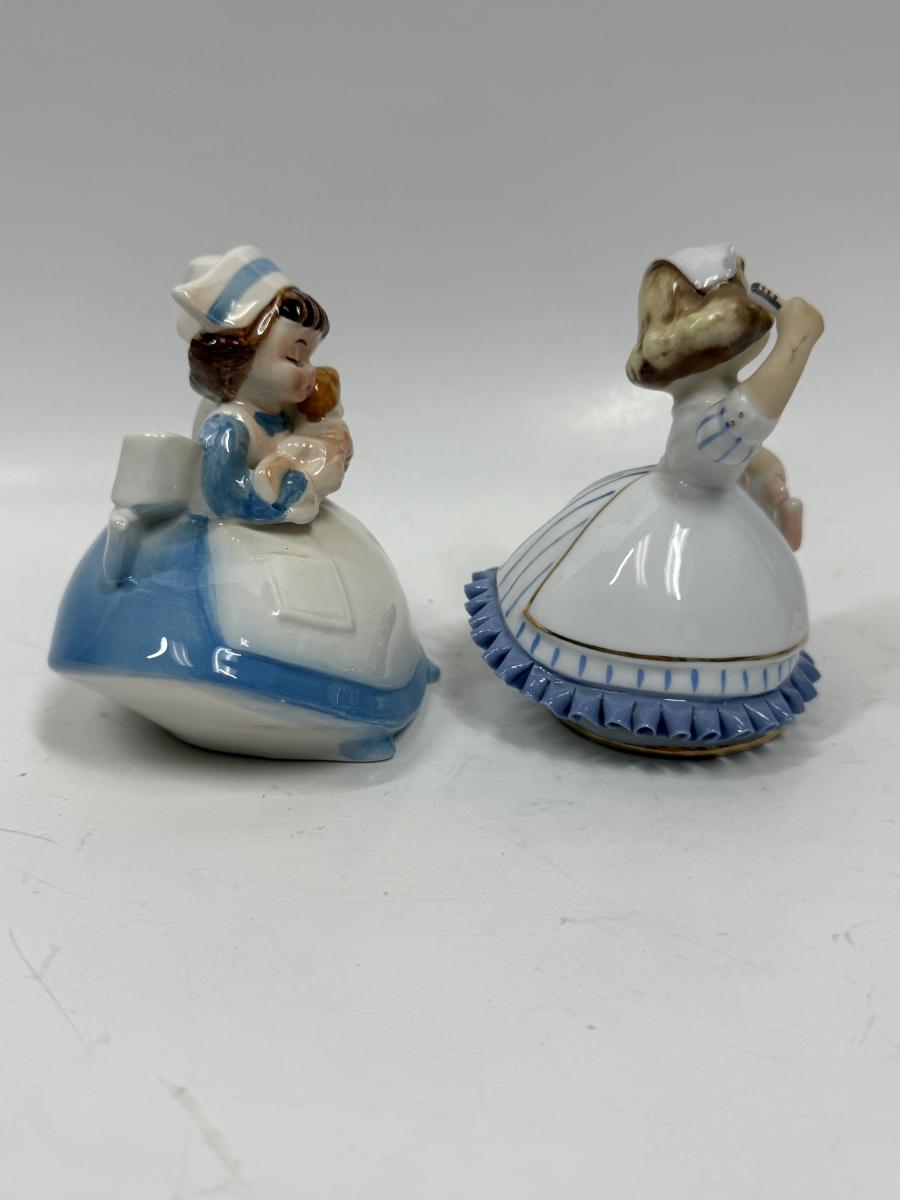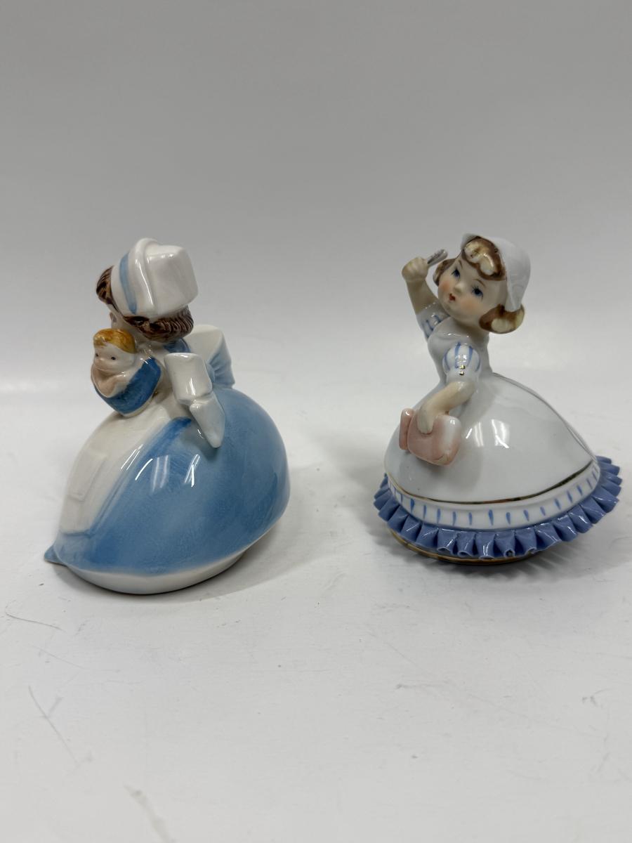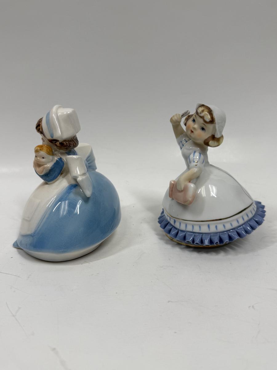 Vintage Figurines 1950's MCM Lefton Nurse Mid-wife Holding Baby and Nurse with Hot Water Bottle Hand Painted Figurines Japan
