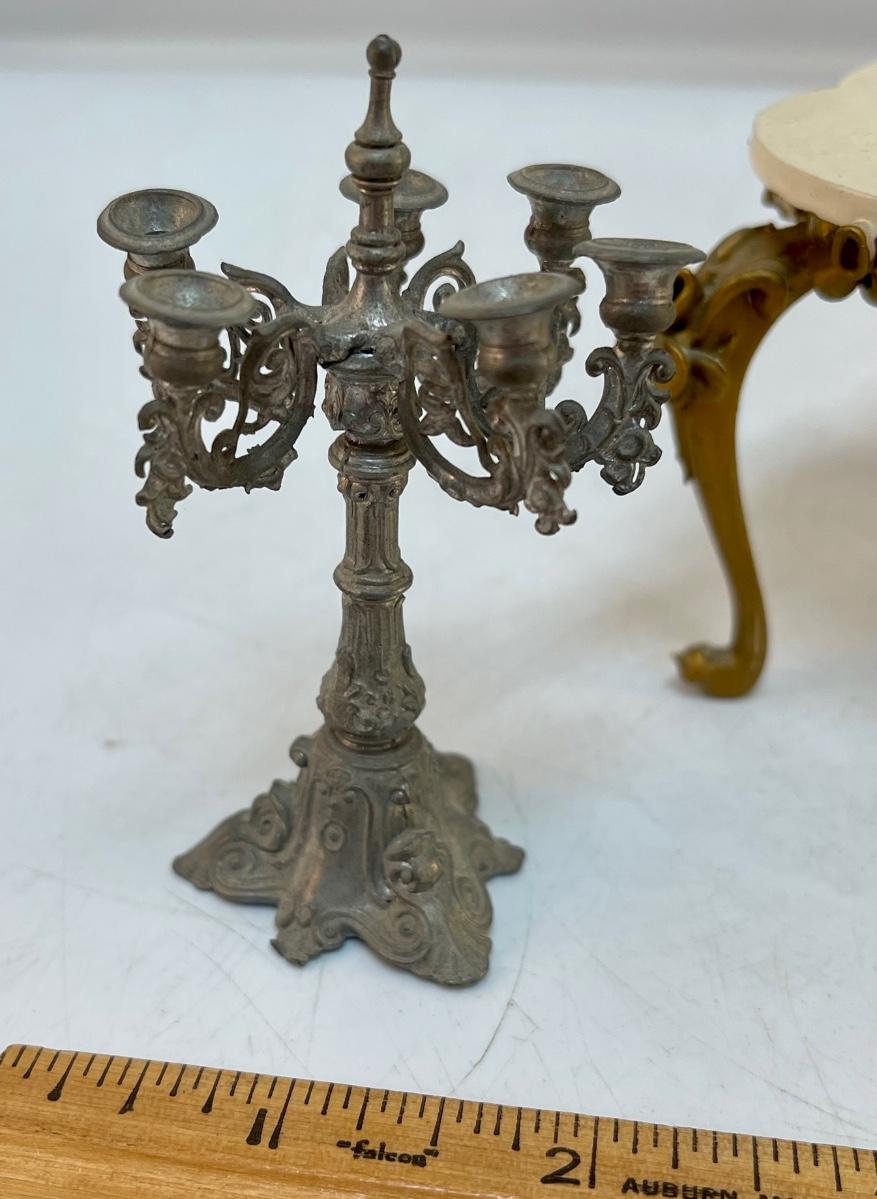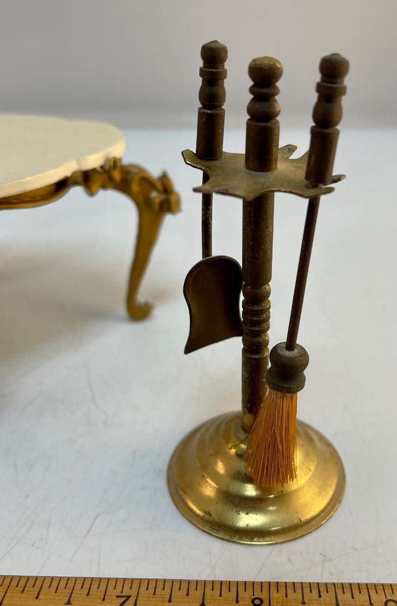 Vintage Lot of Dollhouse Miniatures Table Candelabra Fireplace Tools Spielwaren Germany. Good vintage condition.