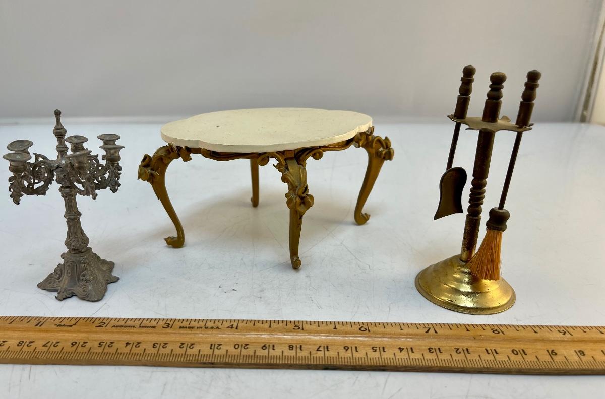Vintage Lot of Dollhouse Miniatures Table Candelabra Fireplace Tools Spielwaren Germany