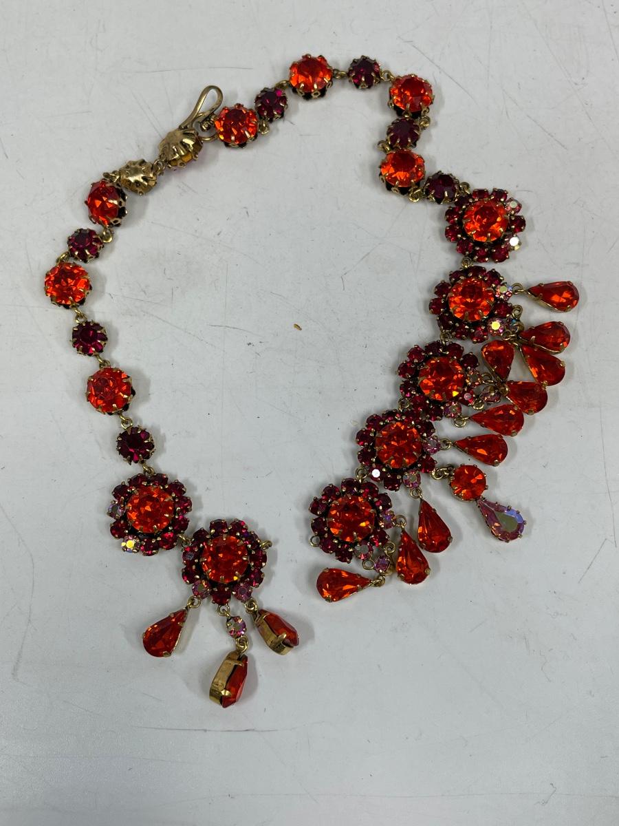 Costume Jewelry Necklace Red Rhinestones
