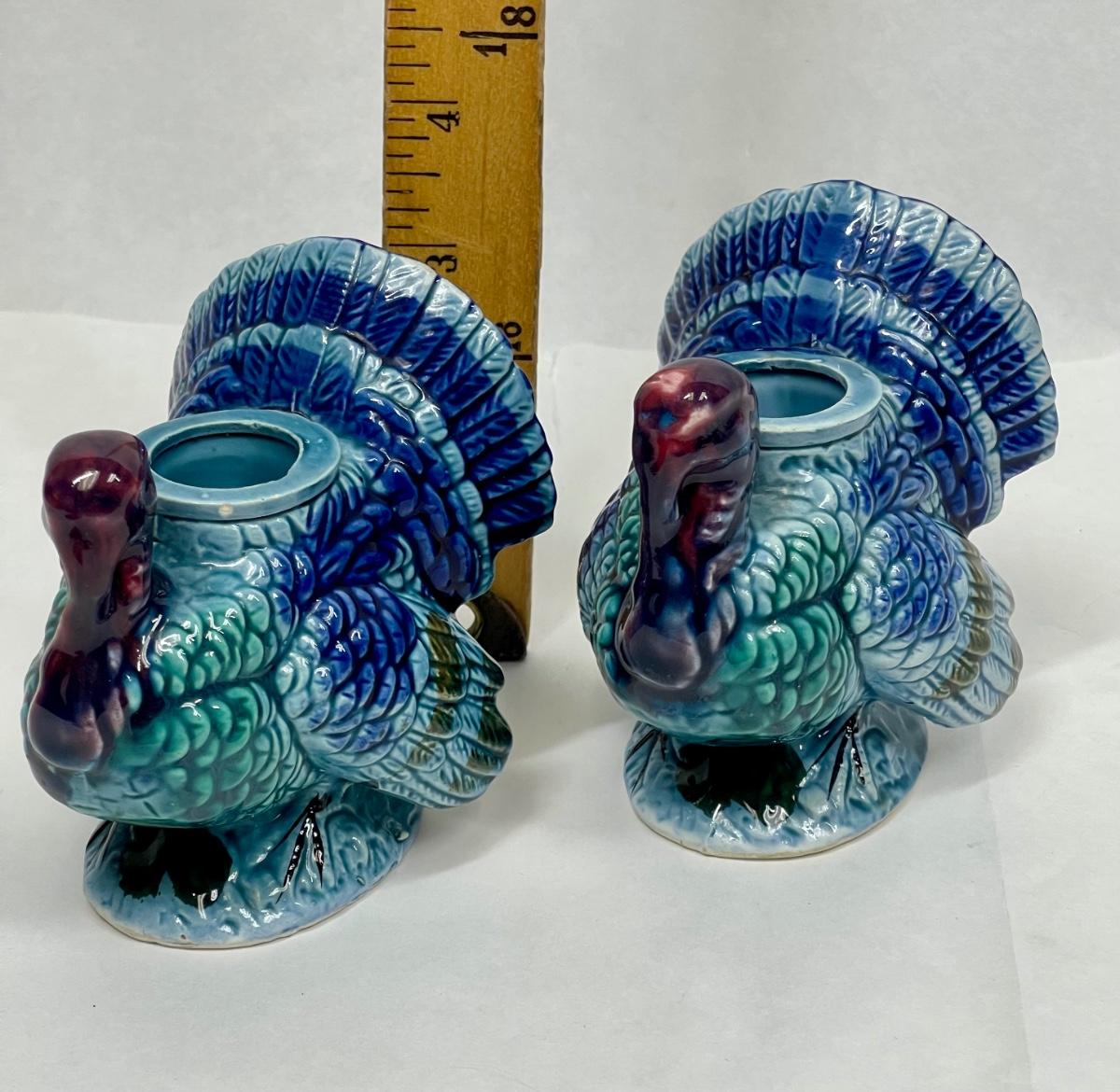 Pair Of Turkey Taper Candle Holders Thanksgiving