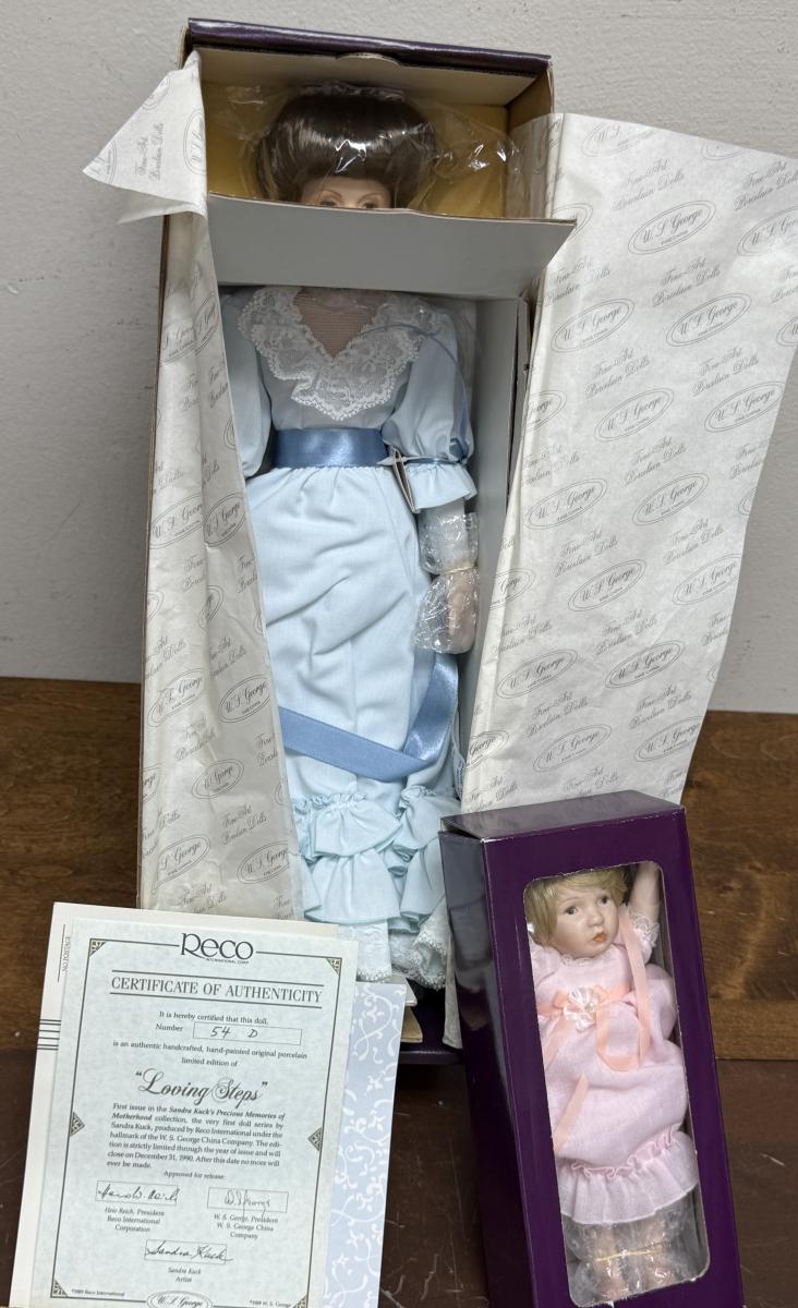 2 dolls! Vintage Sandra Kuck First Steps Precious Moments Ashton Drake Porcelain 17" doll