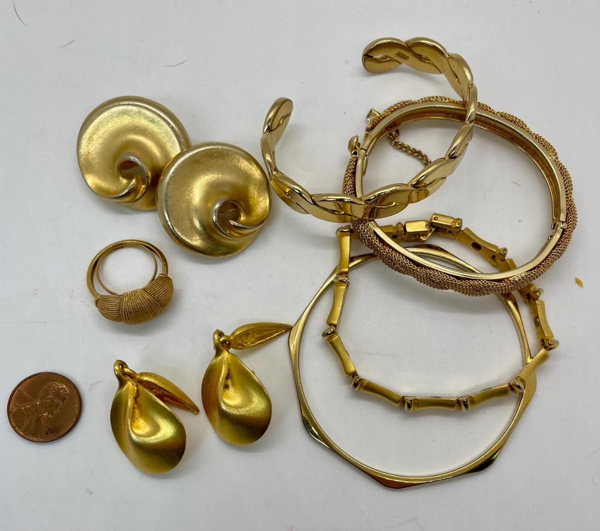 Gold Tone Vintage Jewelry Lot bracelets earrings ring
