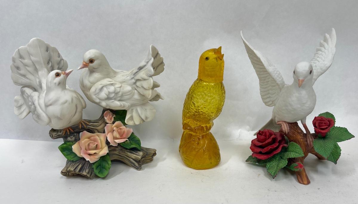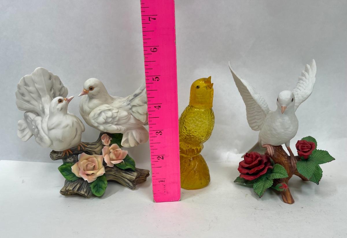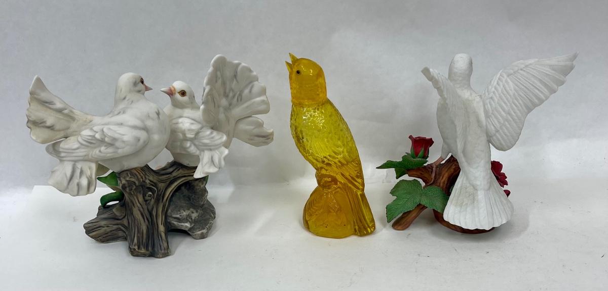 Lot of Bird figurines - 1 yellow perfume bottle and 2 bisque porcelain figurines