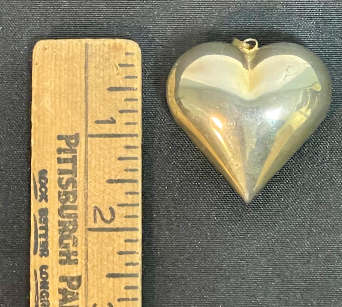 Sterling? Puffed Heart Pendant Unmarked