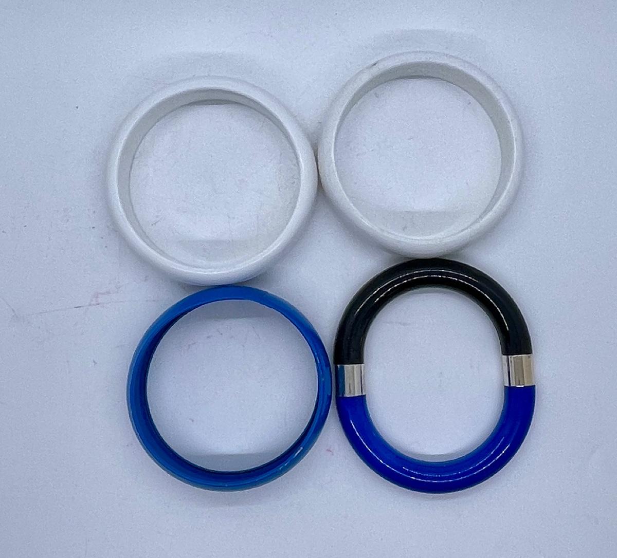 4 bracelets, different sizes, shapes and colors. Good condition.