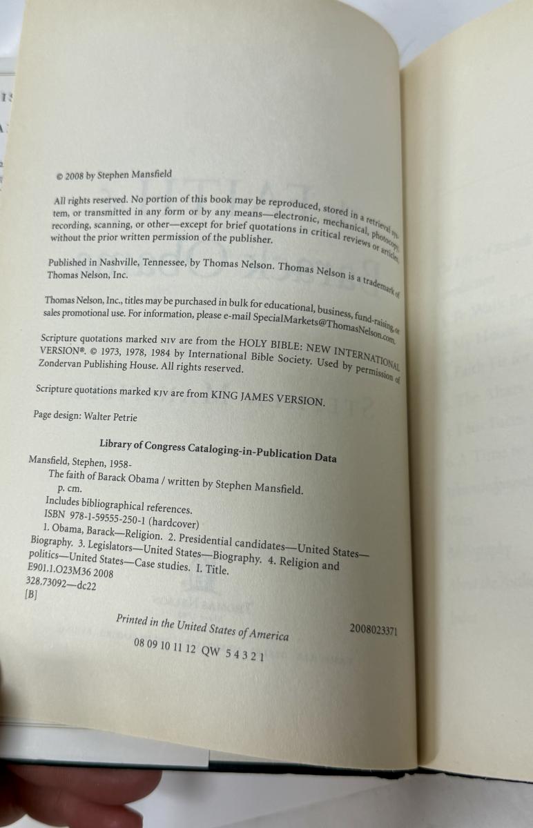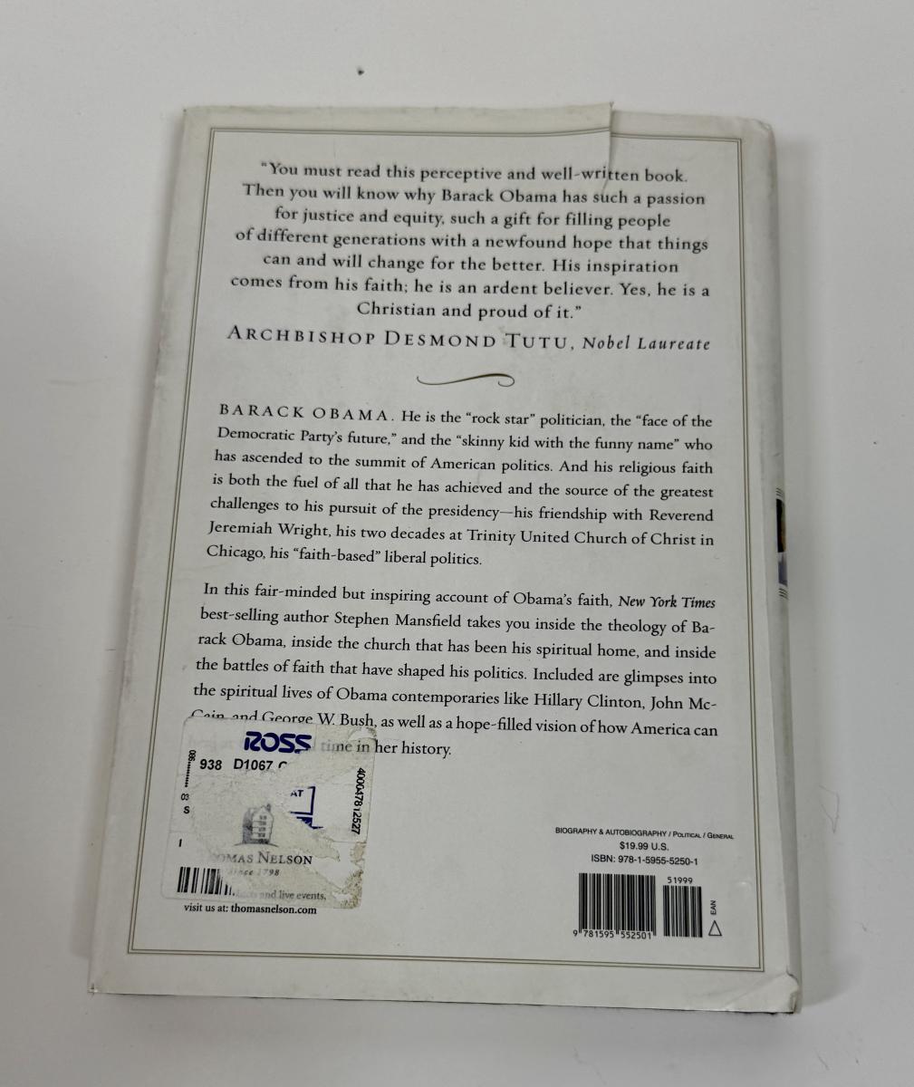 In The Faith of Barack Obama, New York Times bestselling author Stephen Mansfield takes readers inside the mind, heart, and soul of presidential hopeful Barack Obama—as a person of faith, as a man, as an American, and possibly as our future commander in chief. Good condition.