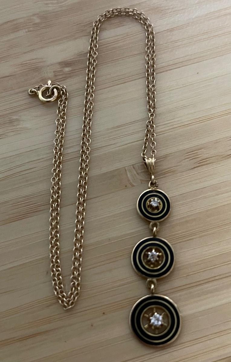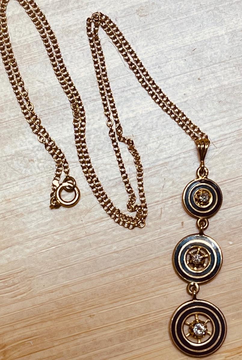 14K Yellow Gold Necklace with drop Pendant - 3 circles with 1/4 ct. diamonds