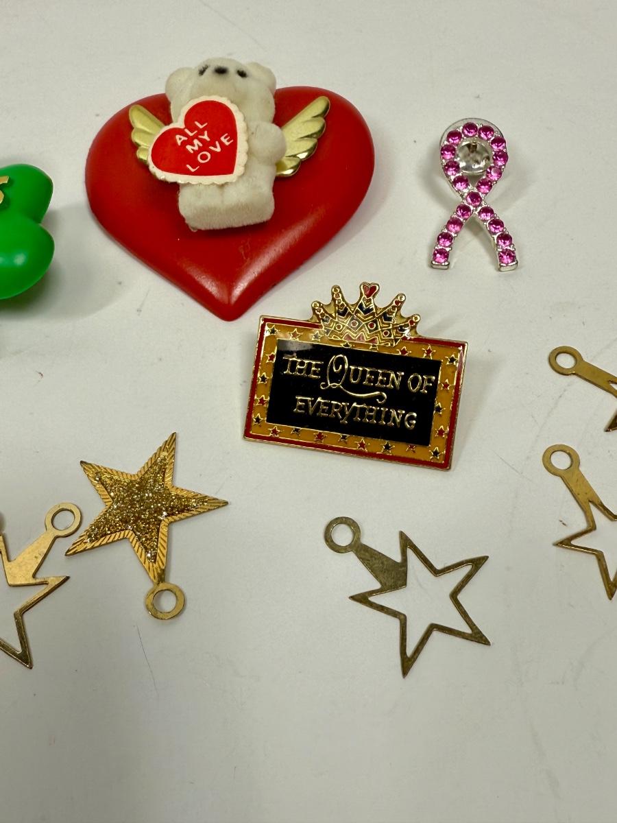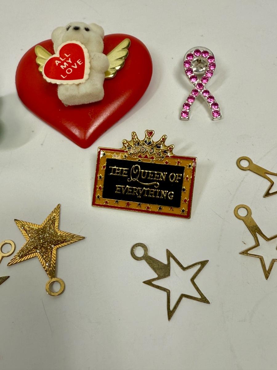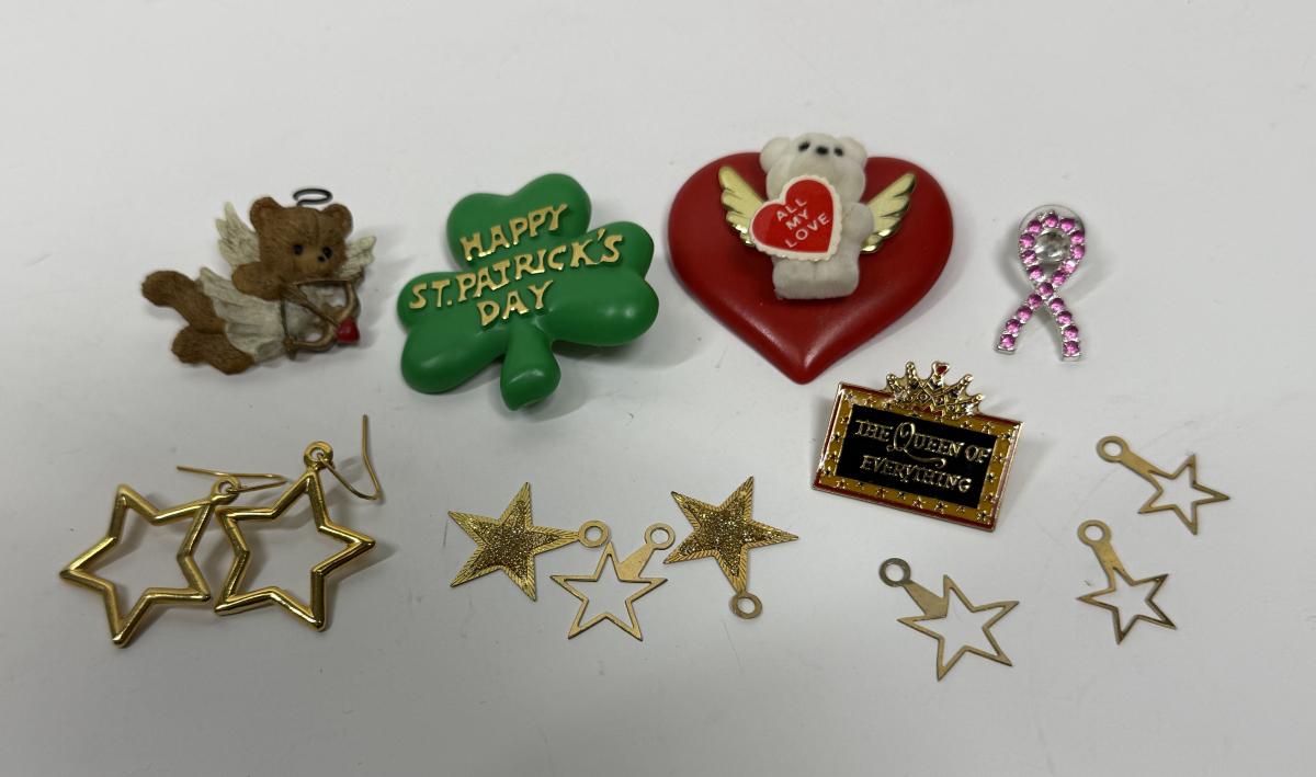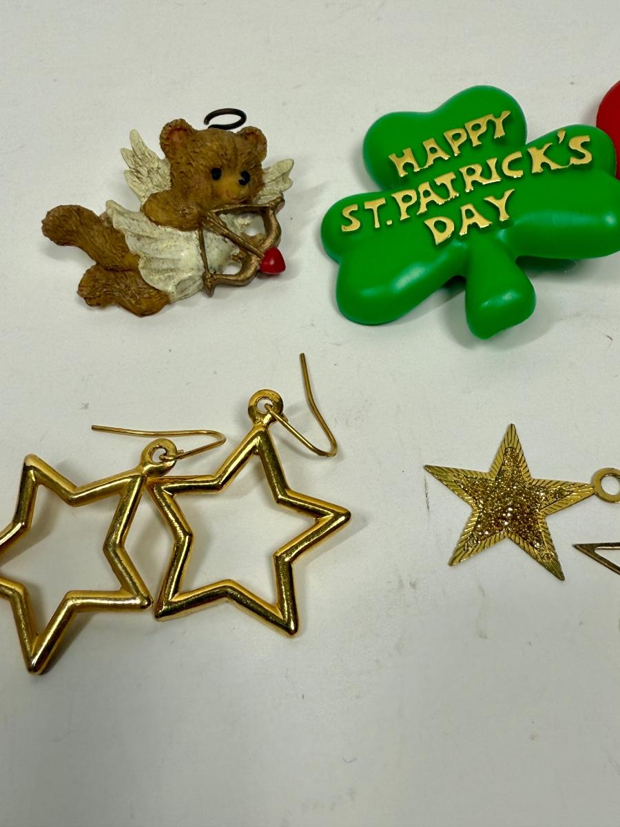 Lot of misc jewelry - holiday themed pins, star earrings, star pendants, etc