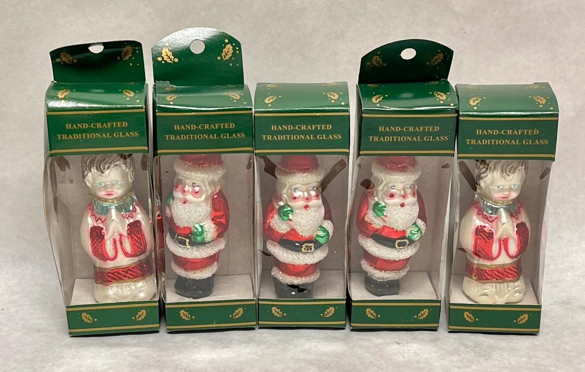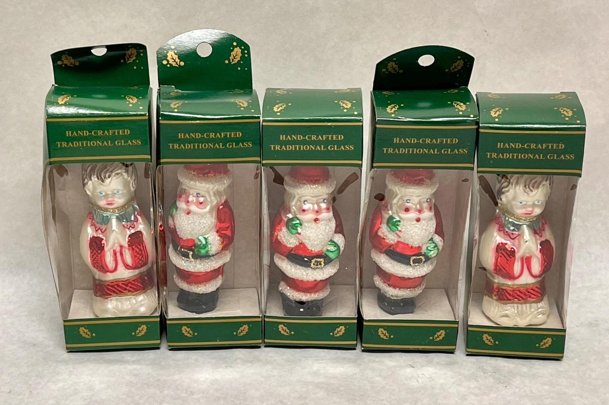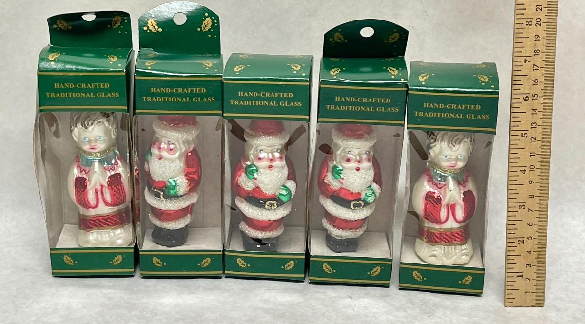 Lot of 5 Hand-Crafted Glass Christmas Ornaments