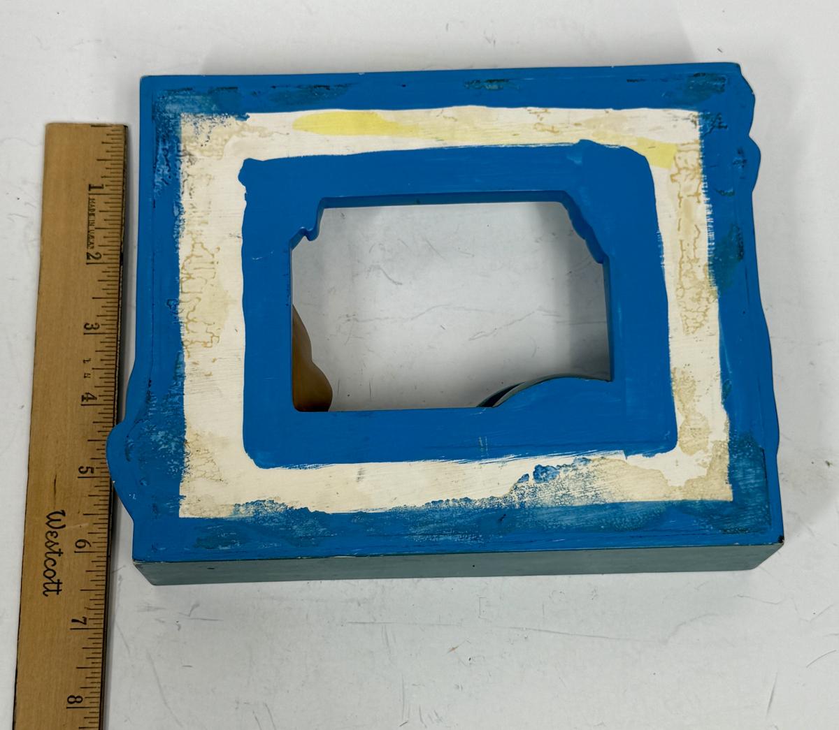 In fair condition, the glass or plastic piece that covers picture is missing.