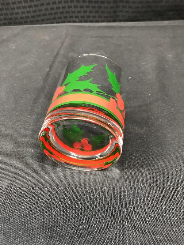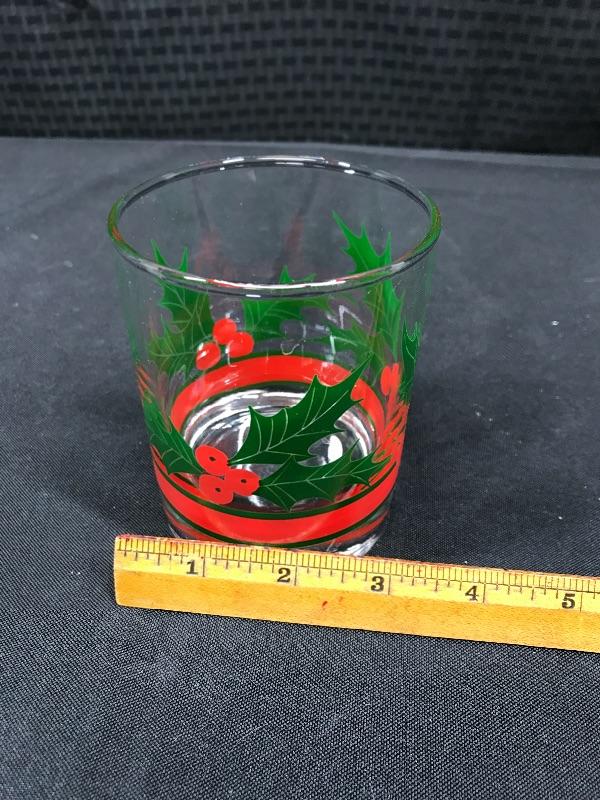 Vintage Christmas holiday holly design rocks glass. 3" size. Good condition.