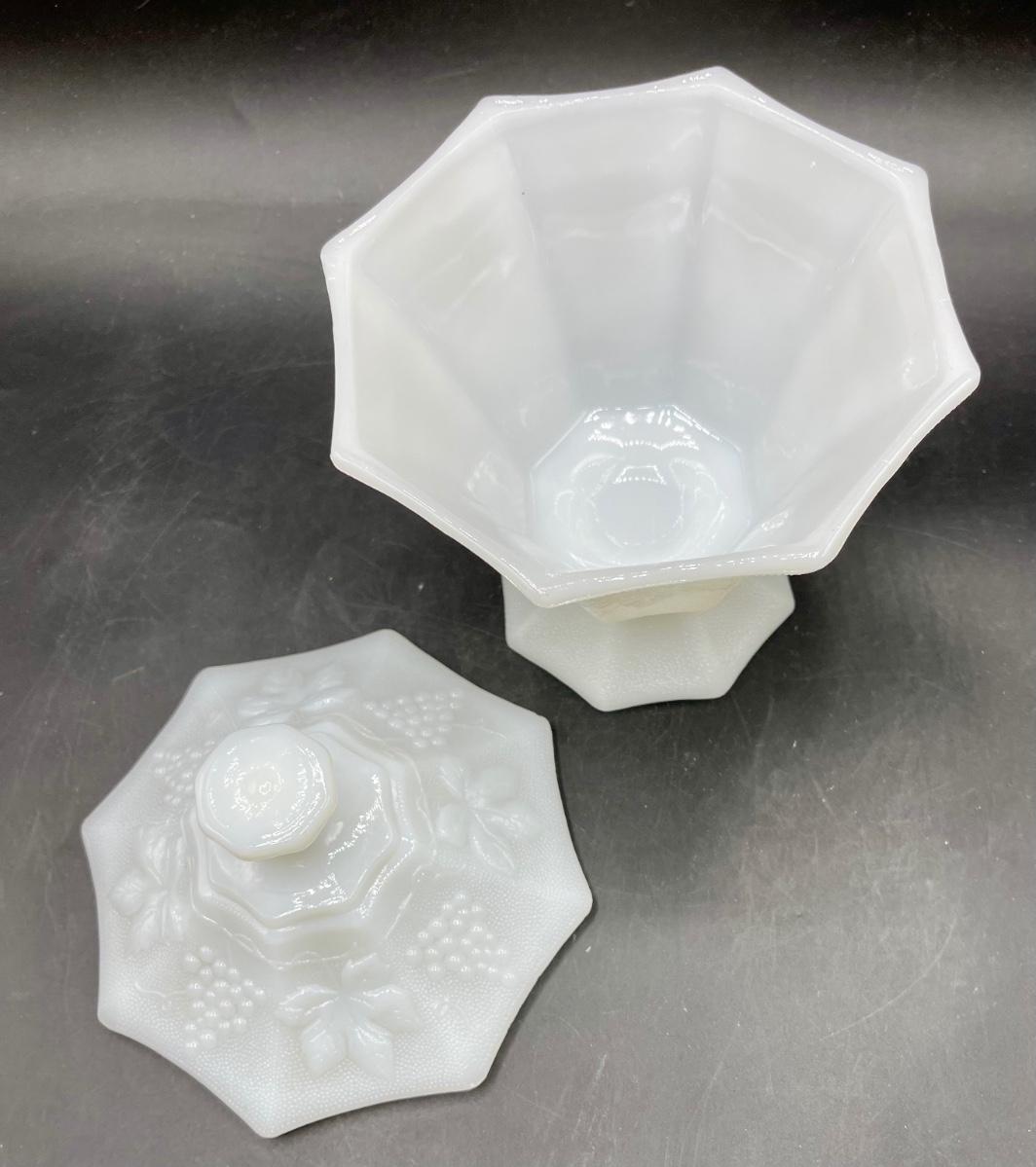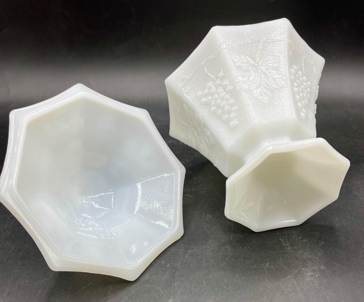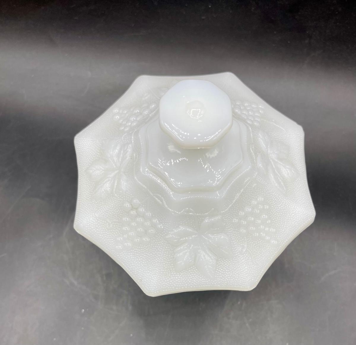 Anchor Hocking Milk Glass Pedestal Cand Dish lidded Grapes Vines