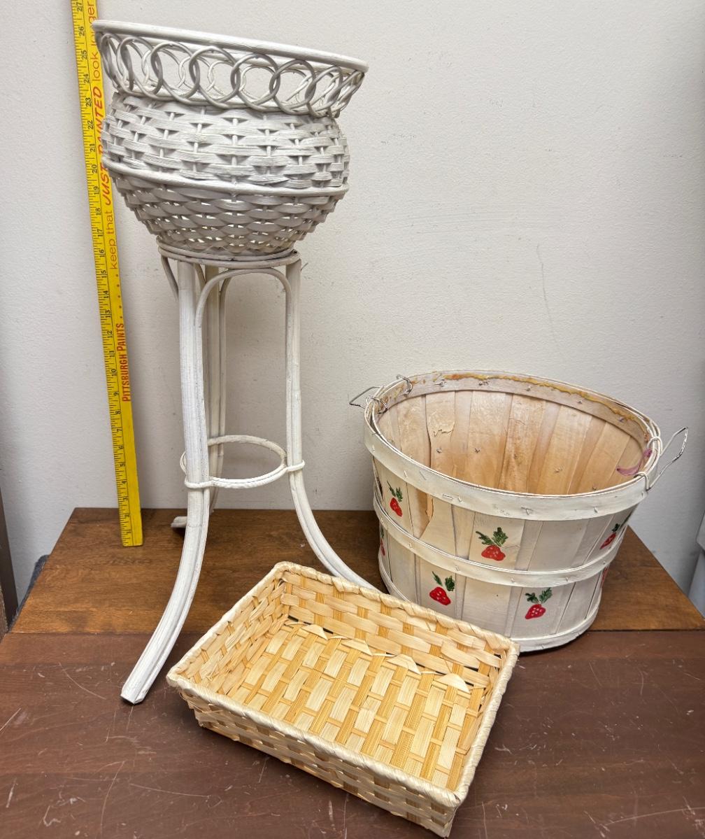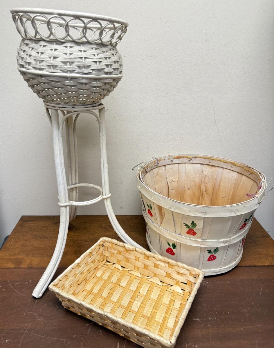 3 pc Lot - Plant Holder, Bushel Basket, Rectangular Basket