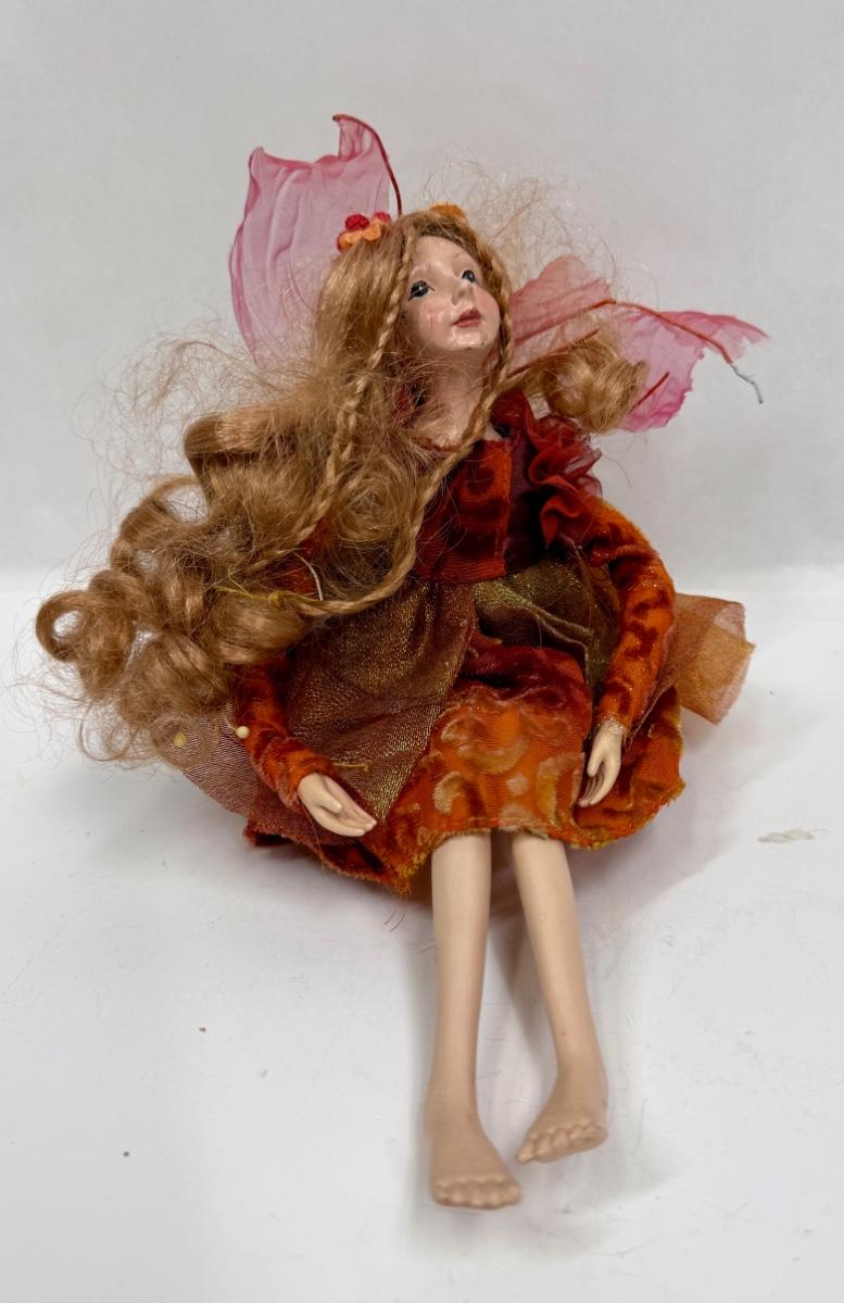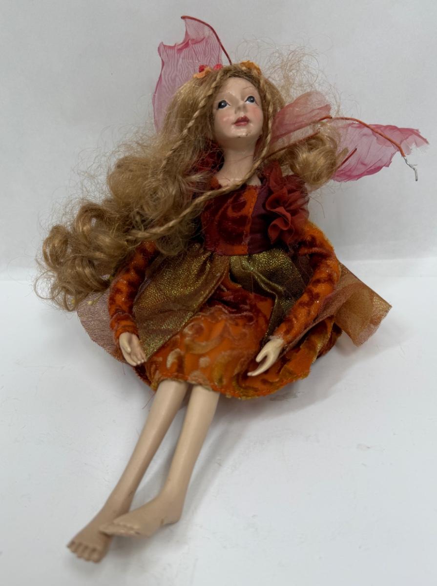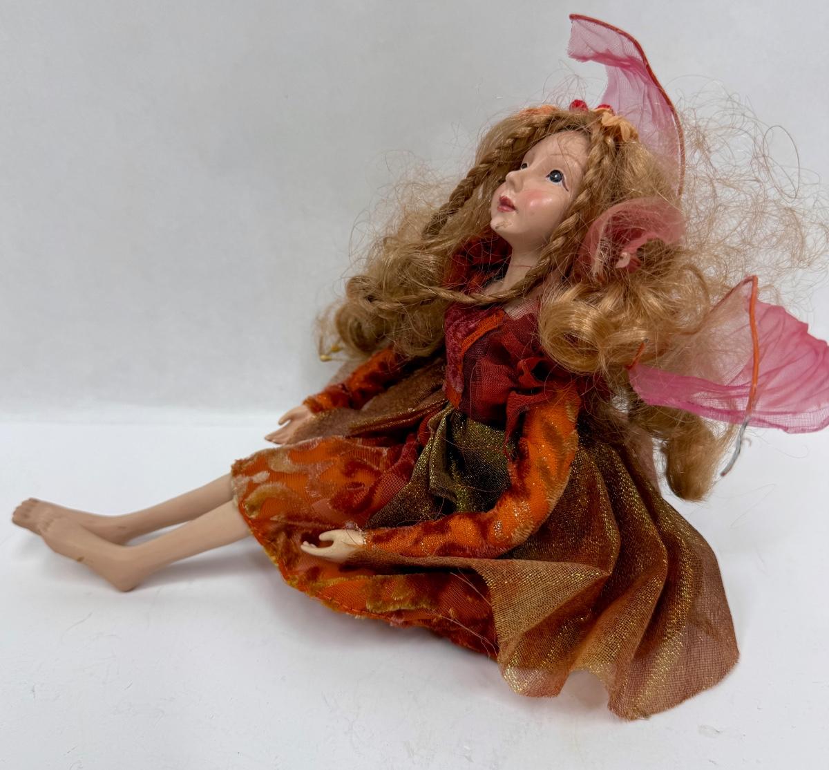 Shelf Sitter Fairy Vintage Woodland Burnt Orange Amber Fairy Doll Pixie