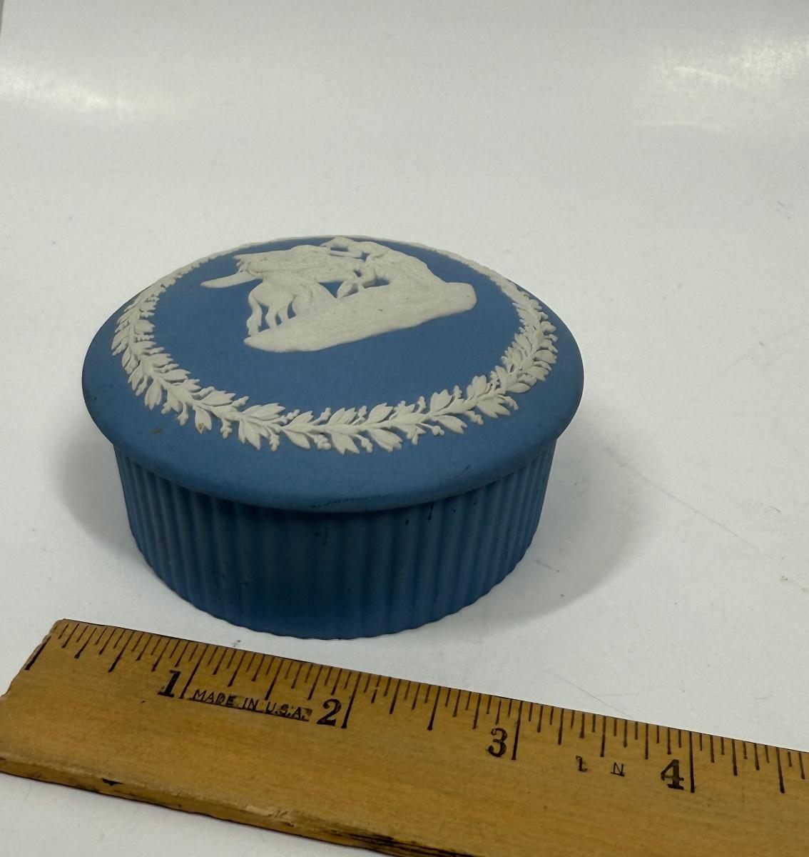 Vintage Blue and White Wedgwood England Lidded Trinket Dish