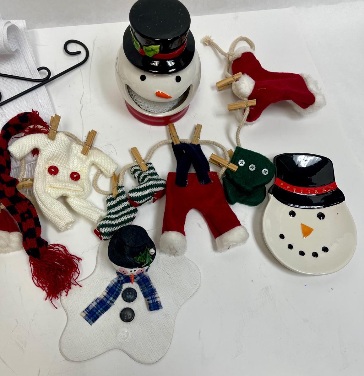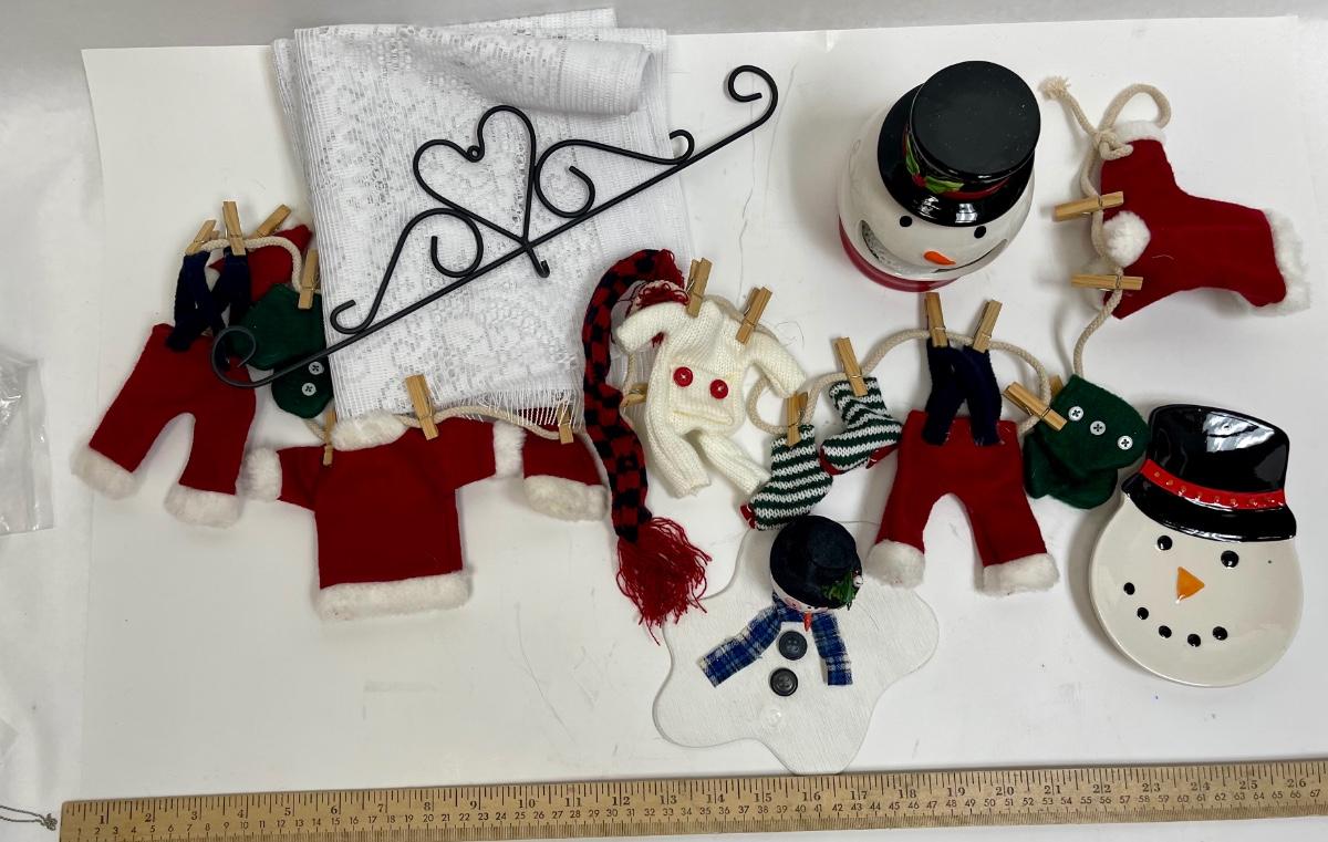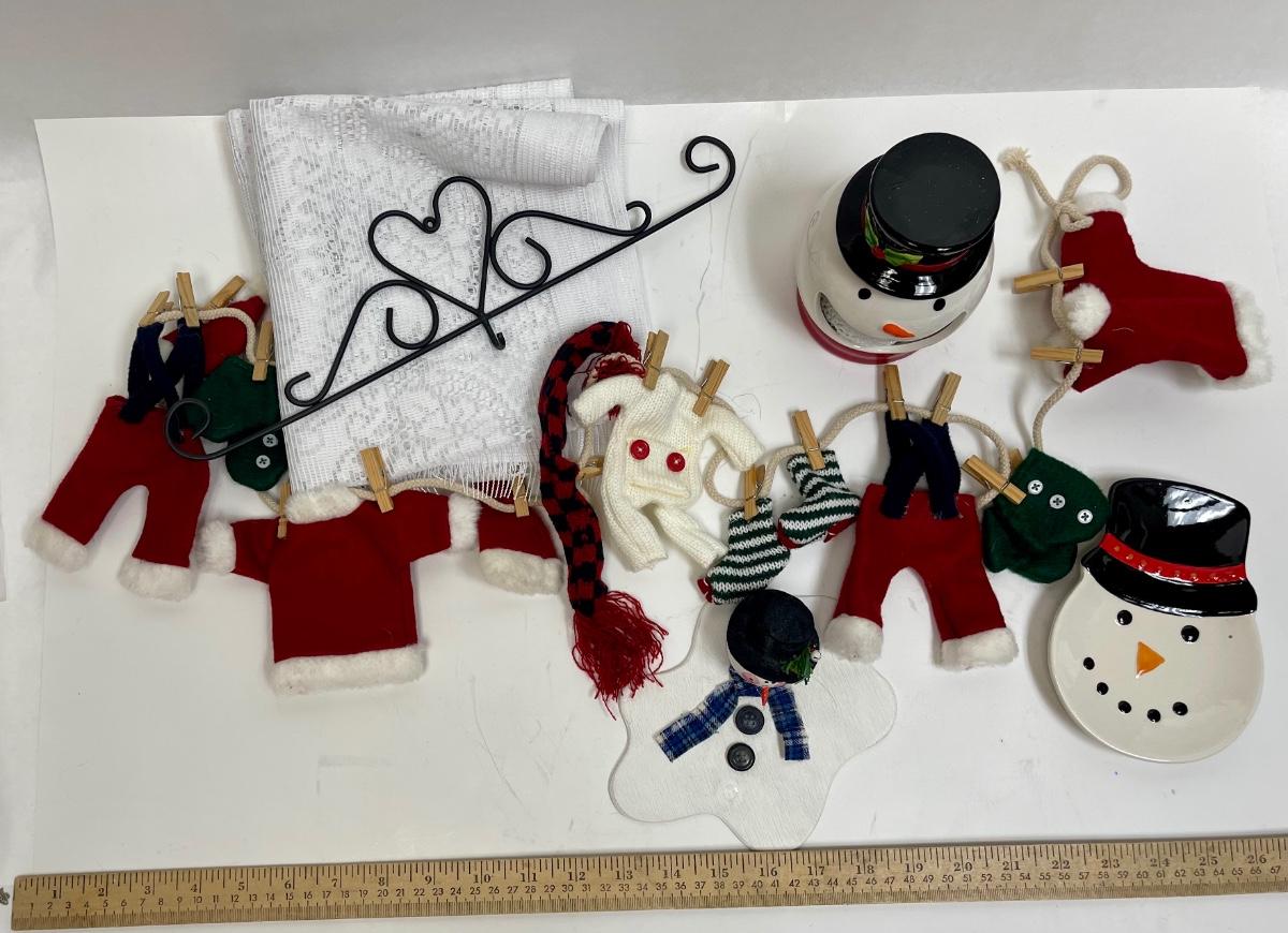 Christmas Lot - Snowmen, Clothing Line, Melted Snowman, Metal Hanger