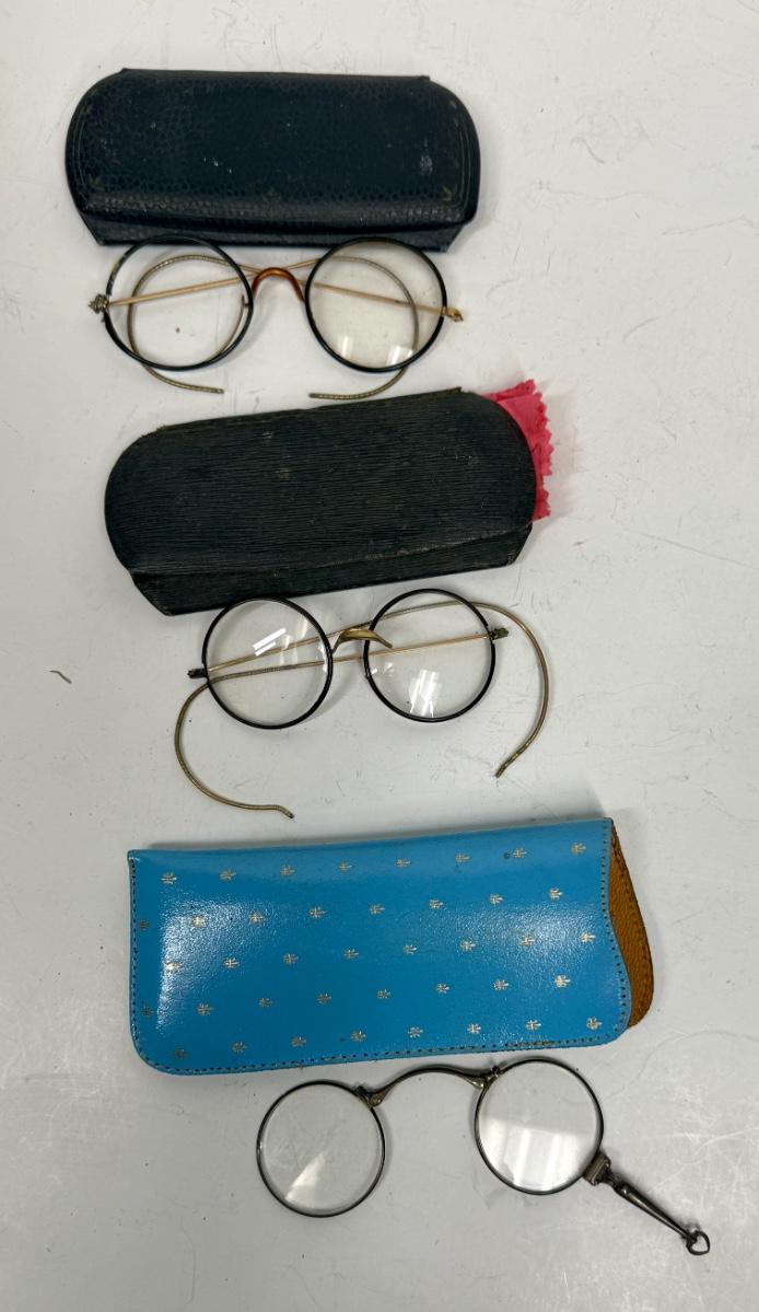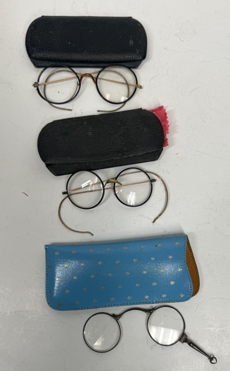 Lot of 3 pairs of antique metal spectacles glasses round eyes