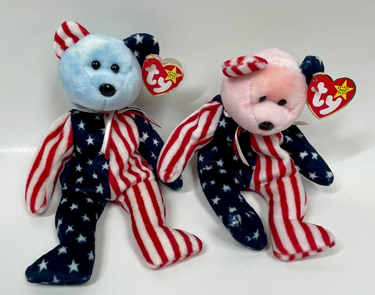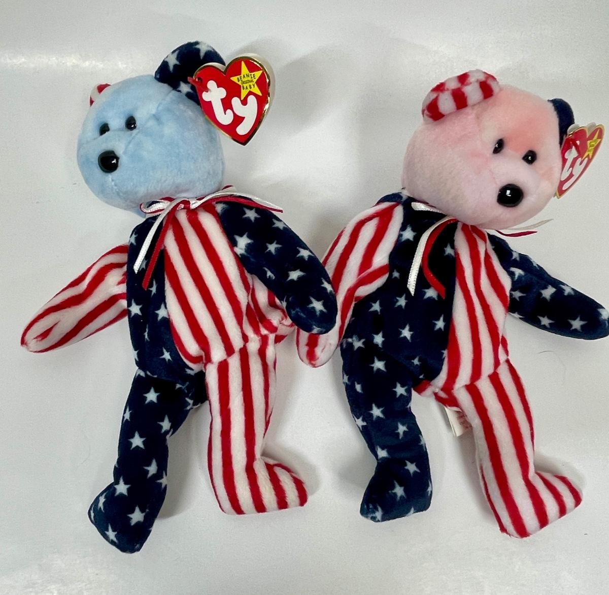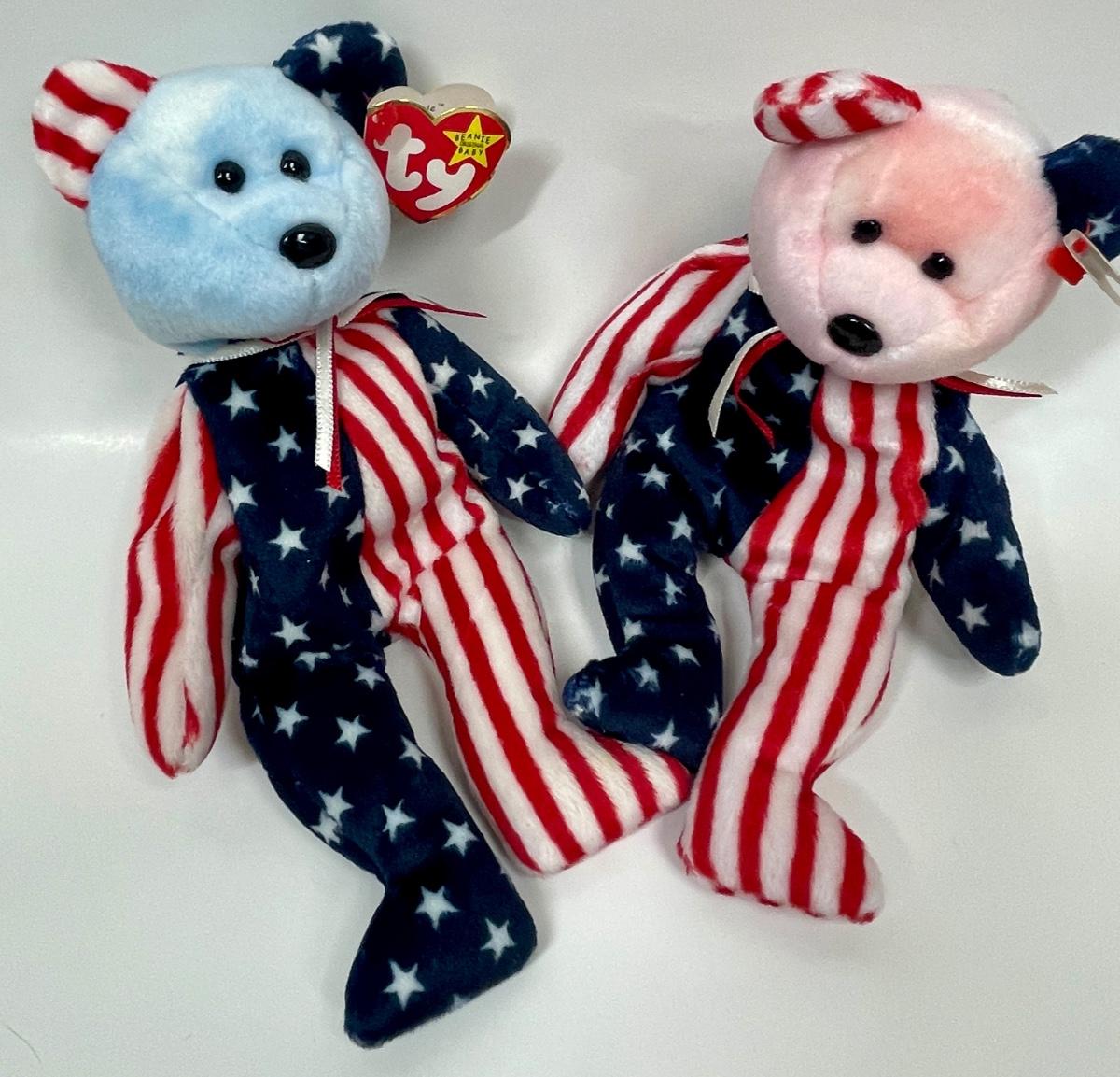 Ty Beanie Babies SpanglePink Face & Blue Face Patriotic Bears Retired 1999 Rare
