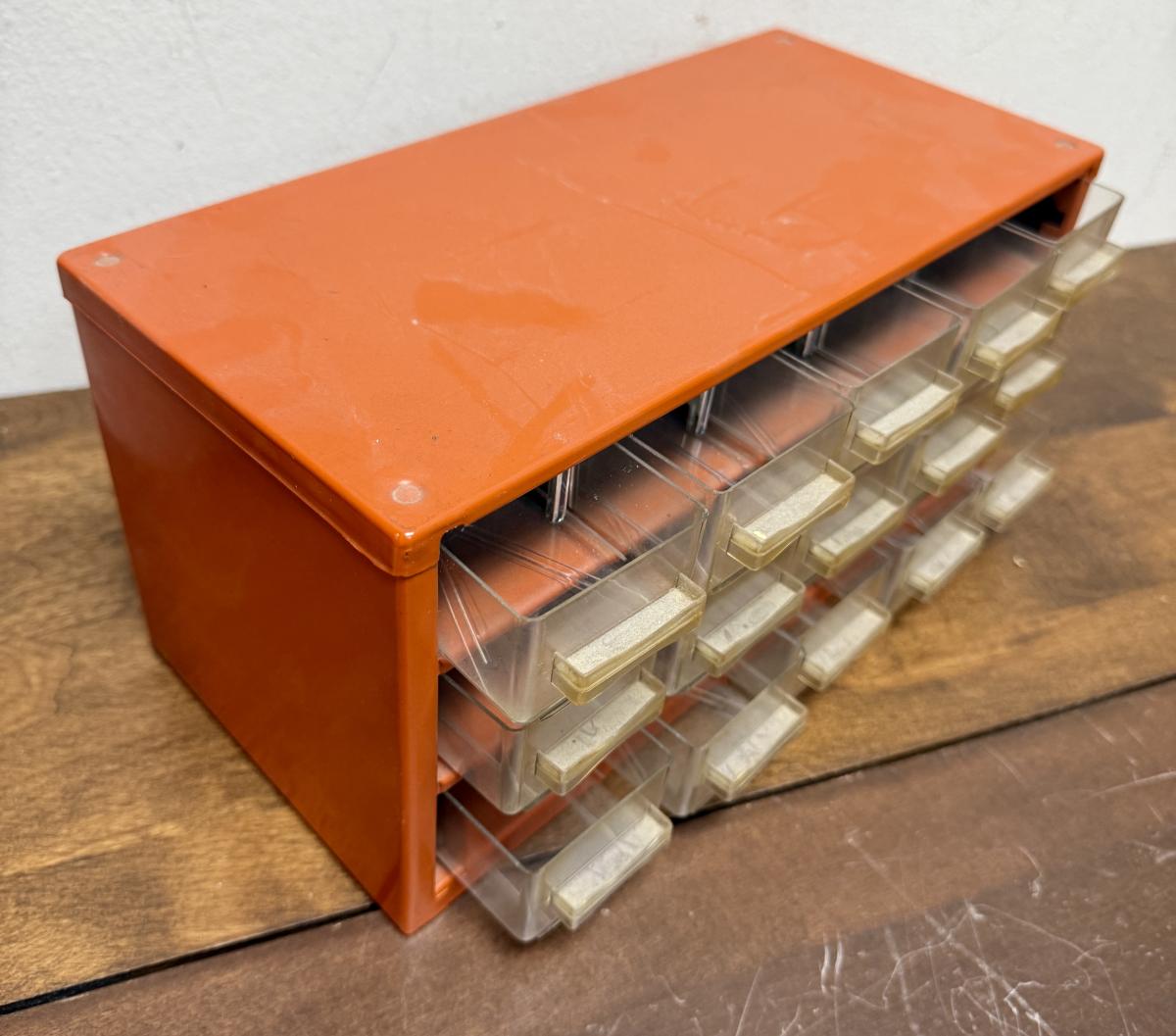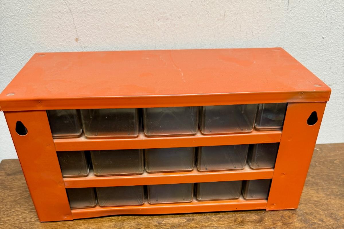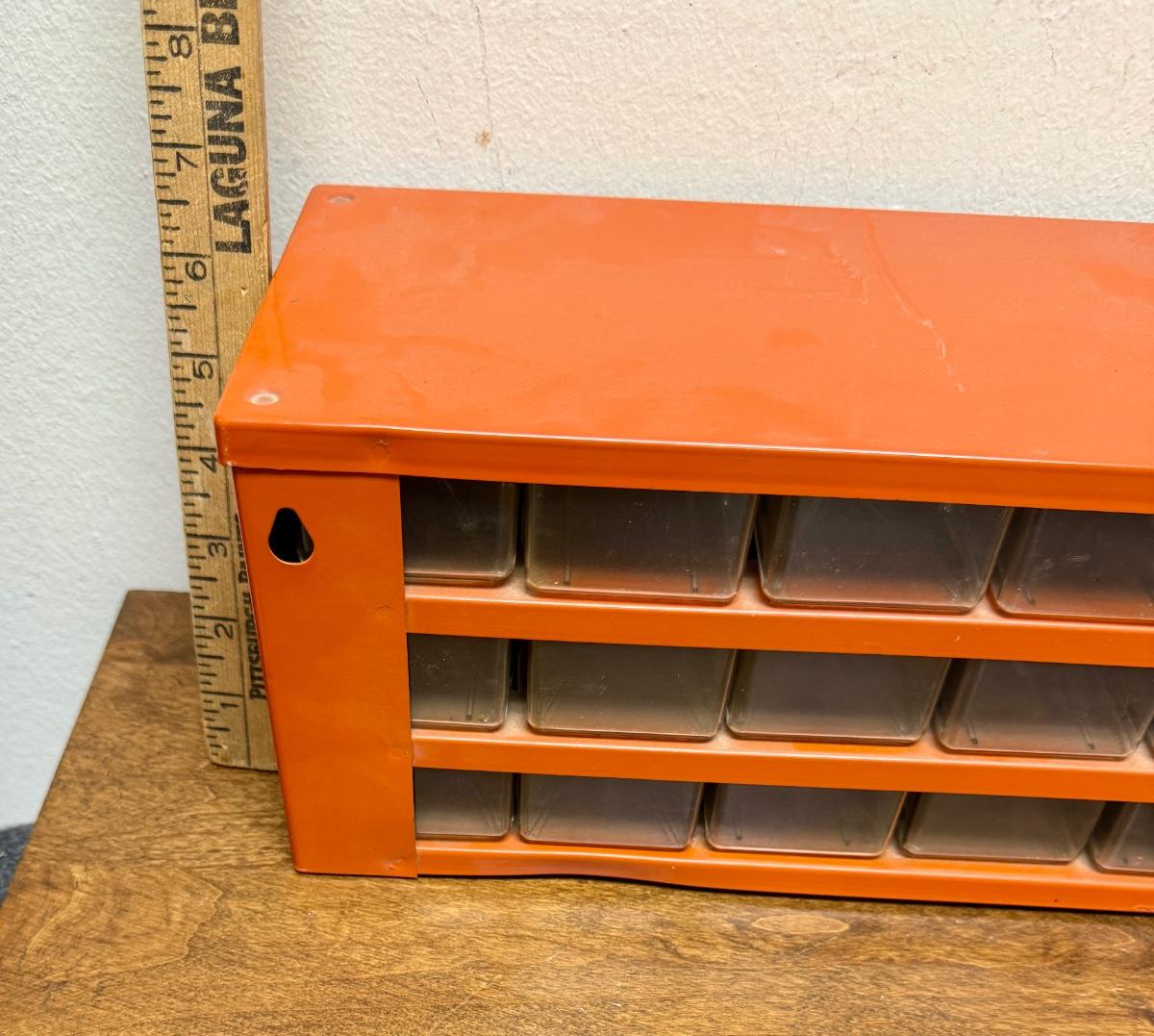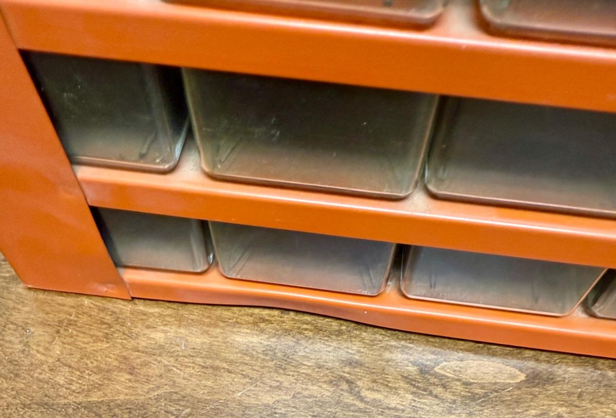Vintage Raaco Metal Storage Cabinet 15 Drawer Parts Organizer Denmark Orange MCM