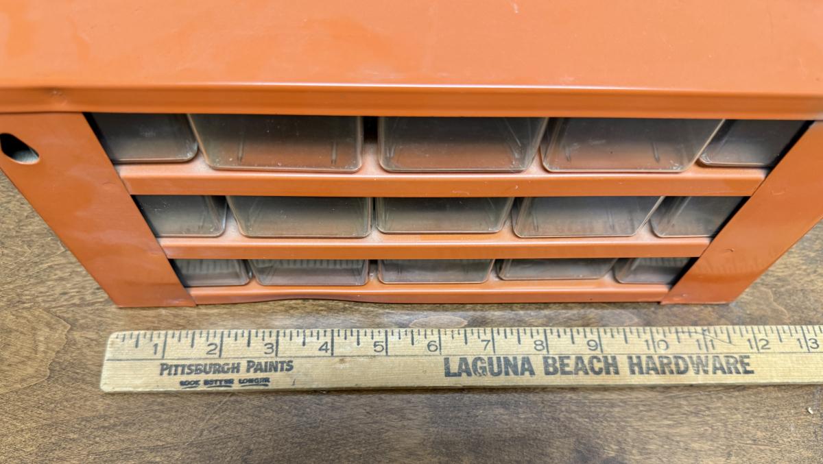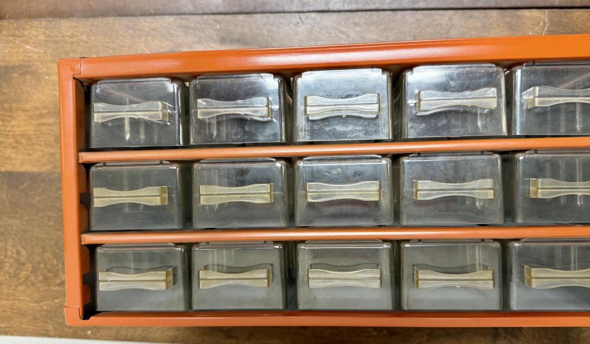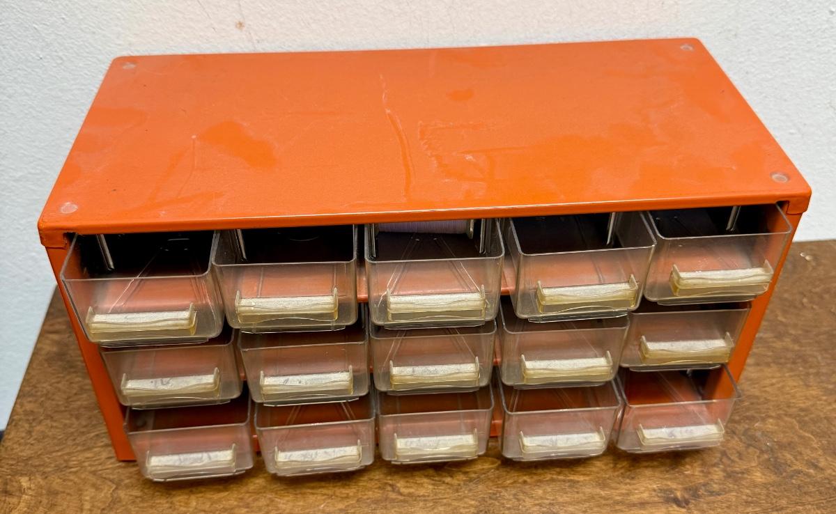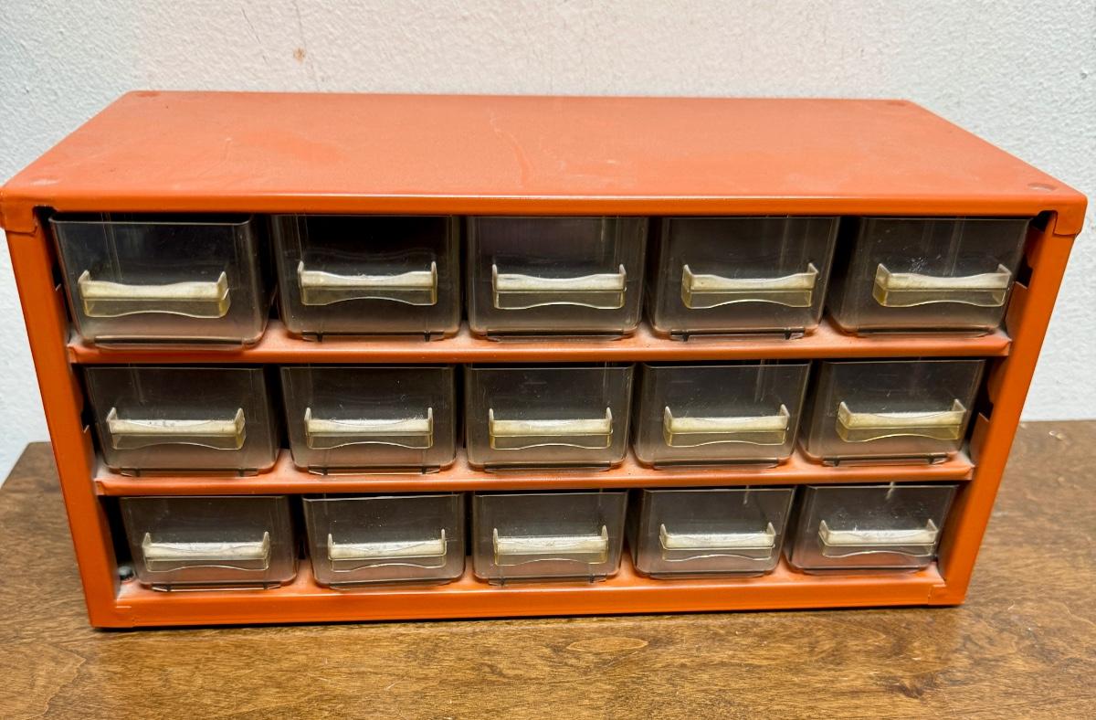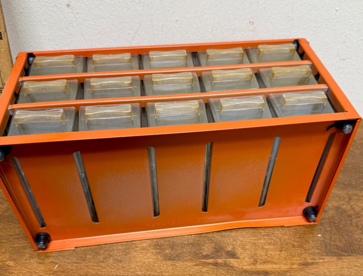 Vintage Raaco Metal Storage Cabinet 15 Drawer Parts Organizer Denmark Orange MCM