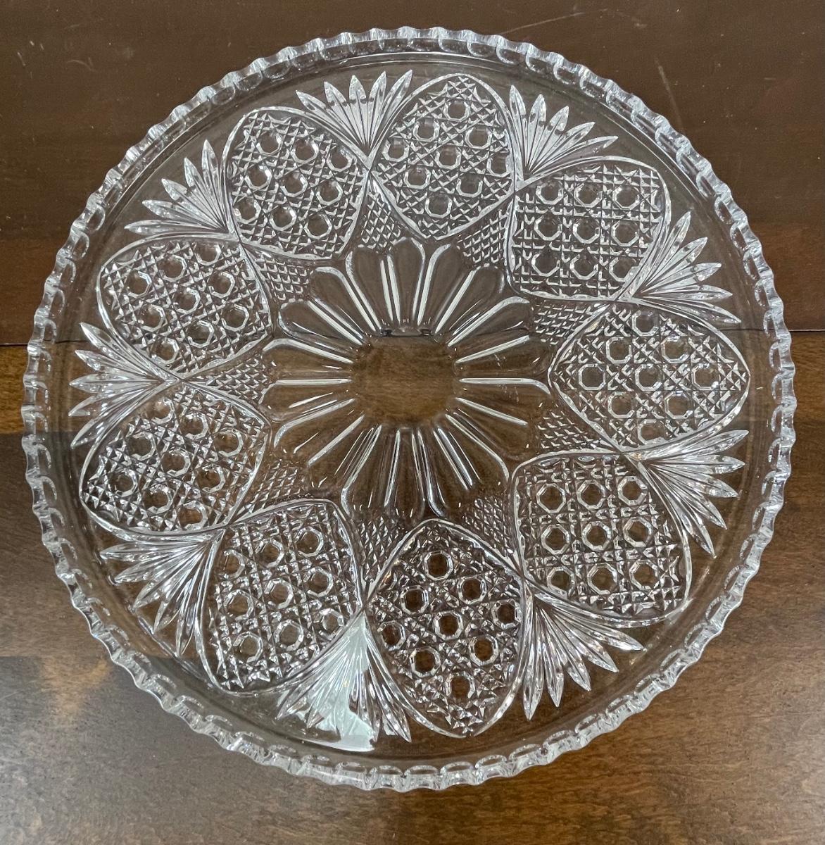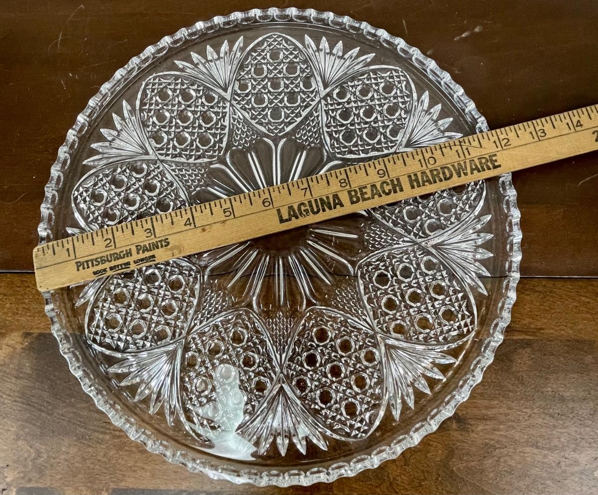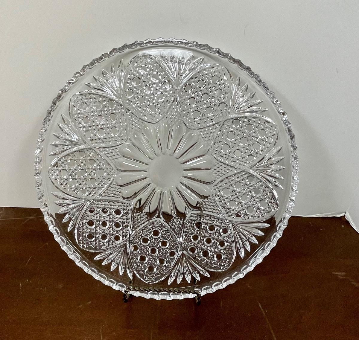 Vintage Pressed Glass Flower Design Serving Platter Plate. About 12" diameter.