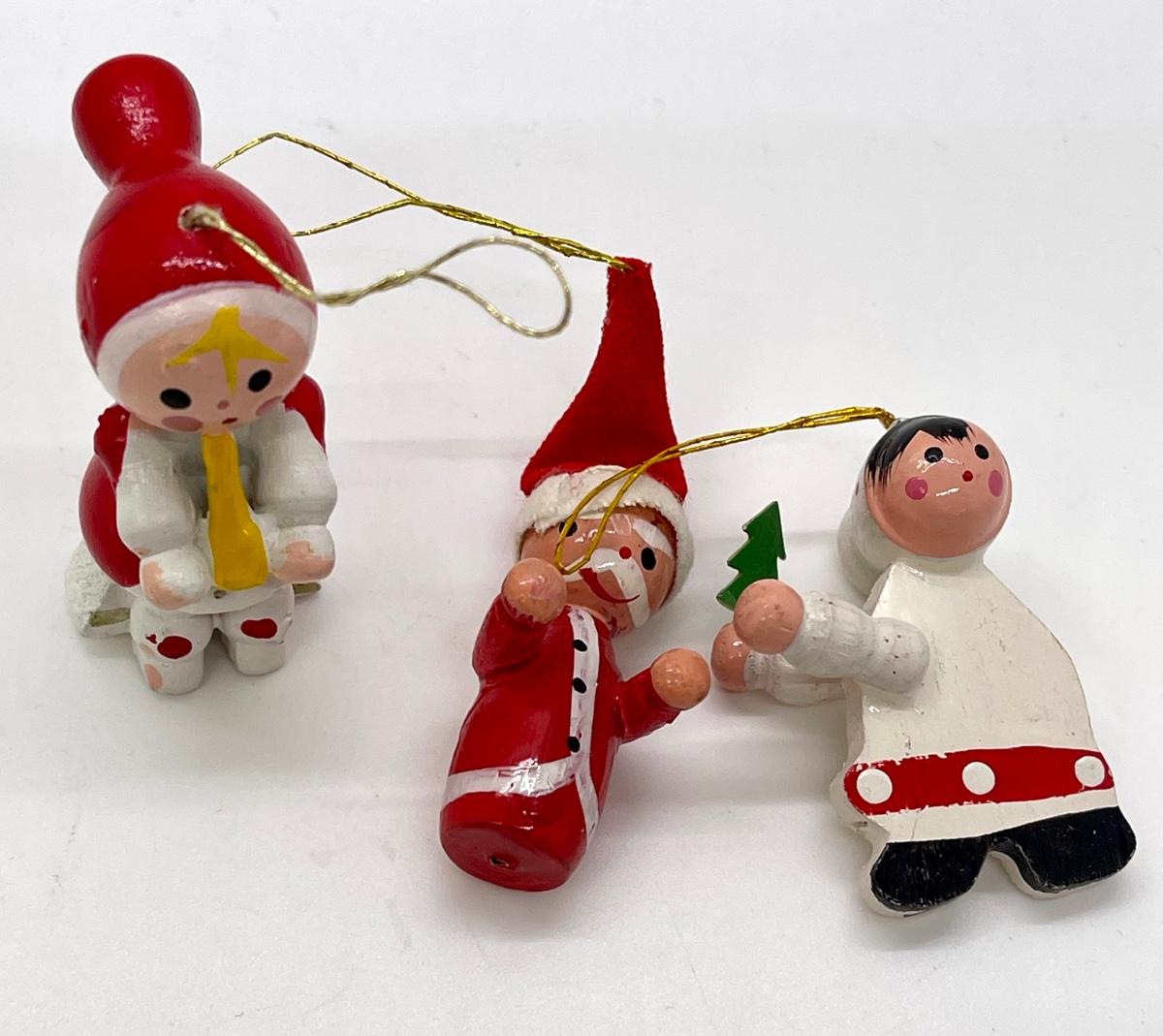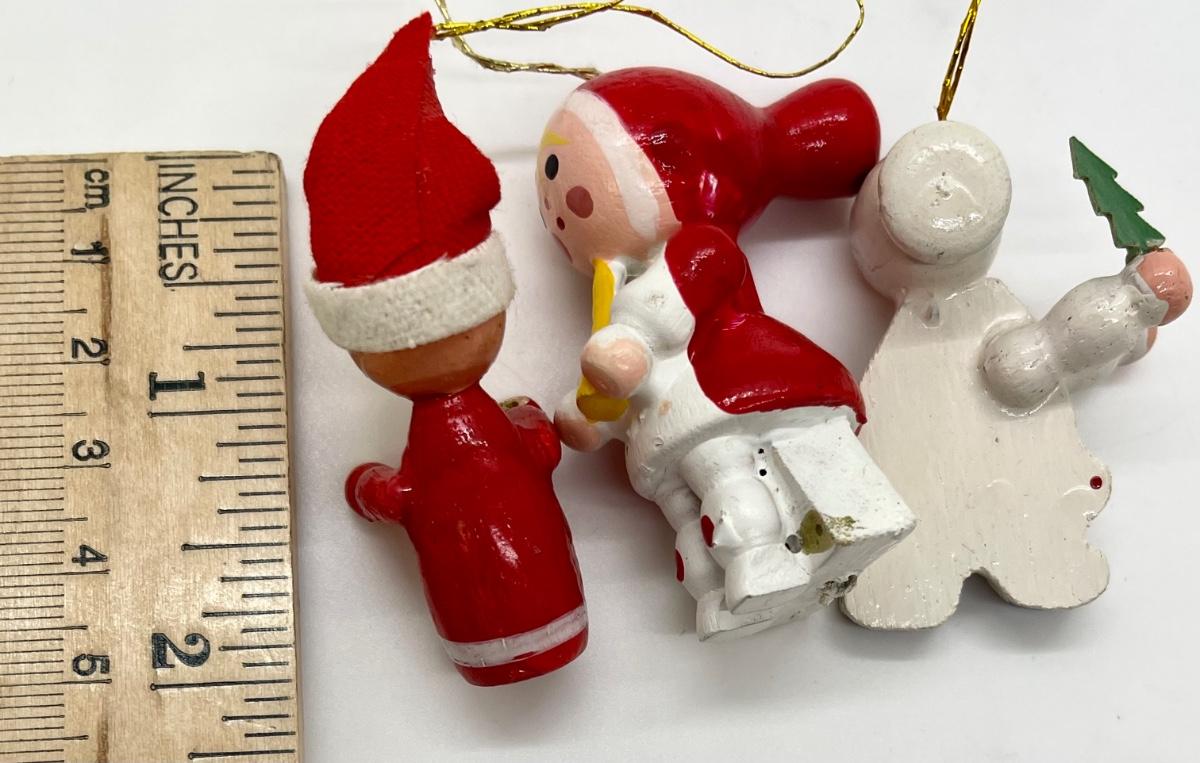 Set of Three Vintage Tiny Hand Painted Wood Christmas Holiday Ornaments