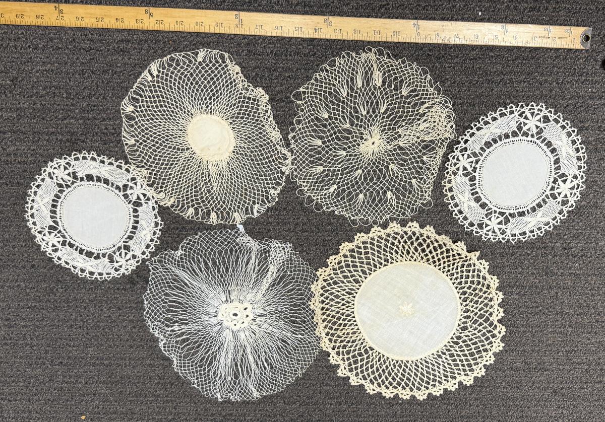 6 pc LOT - Antique Vintage Handmade Doilies WHITES tabletop Decor