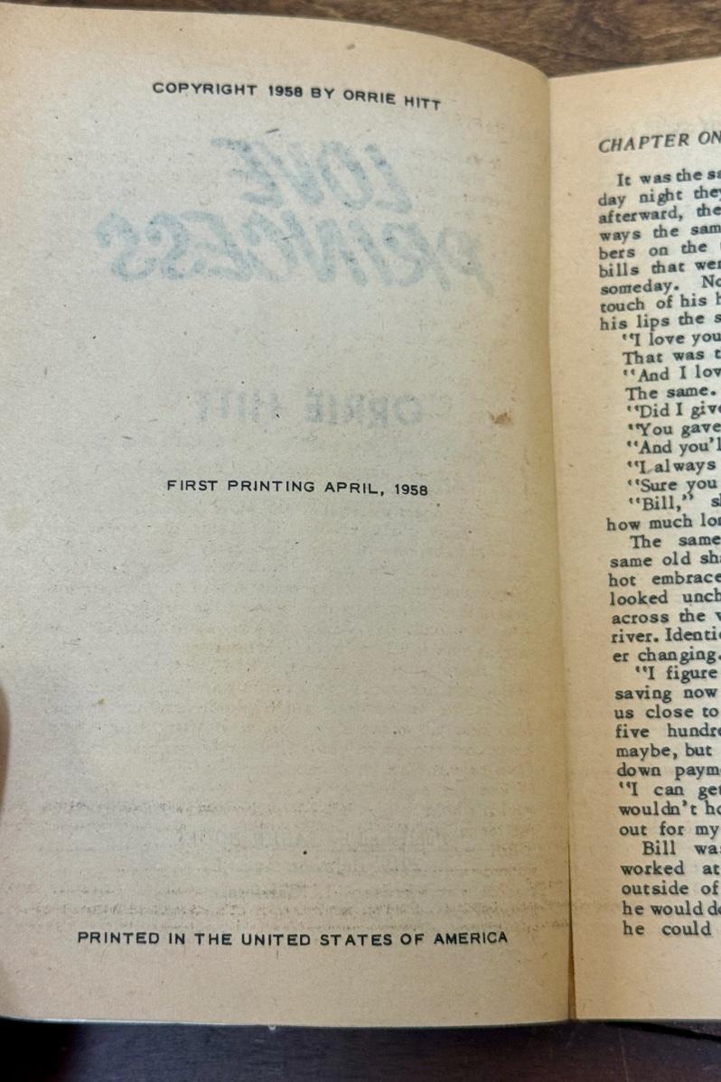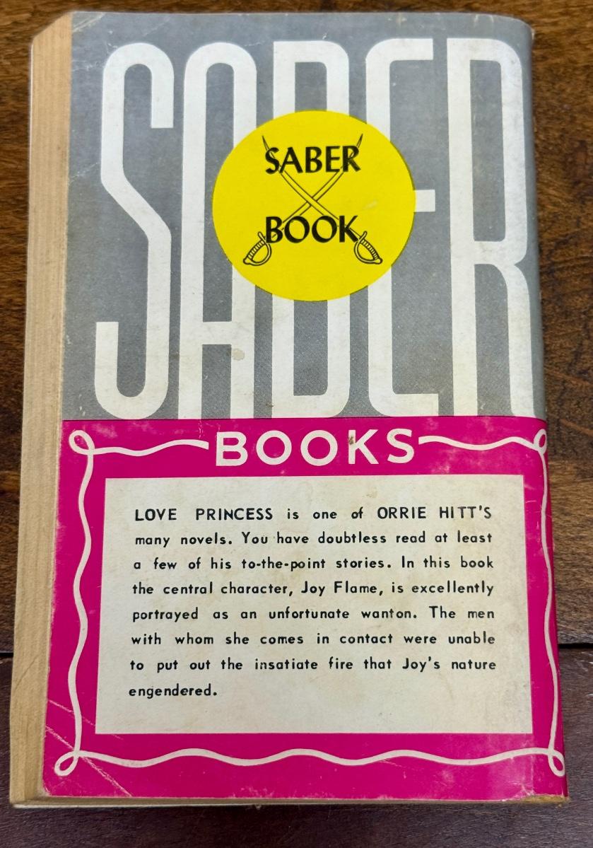 Vintage Saber Paperback Book LOVE PRINCESS by Orrie Hitt first printing 1958 Pulp=fiction