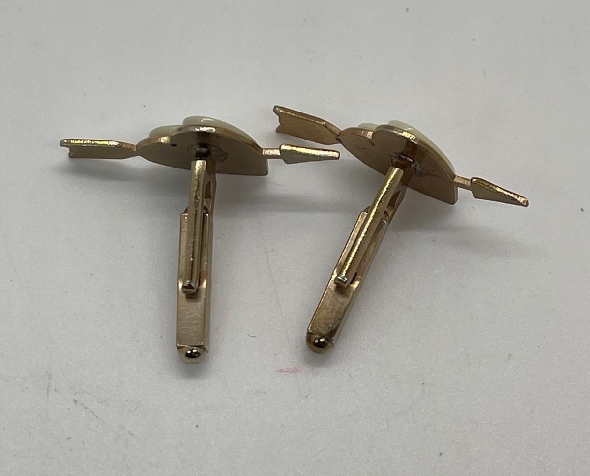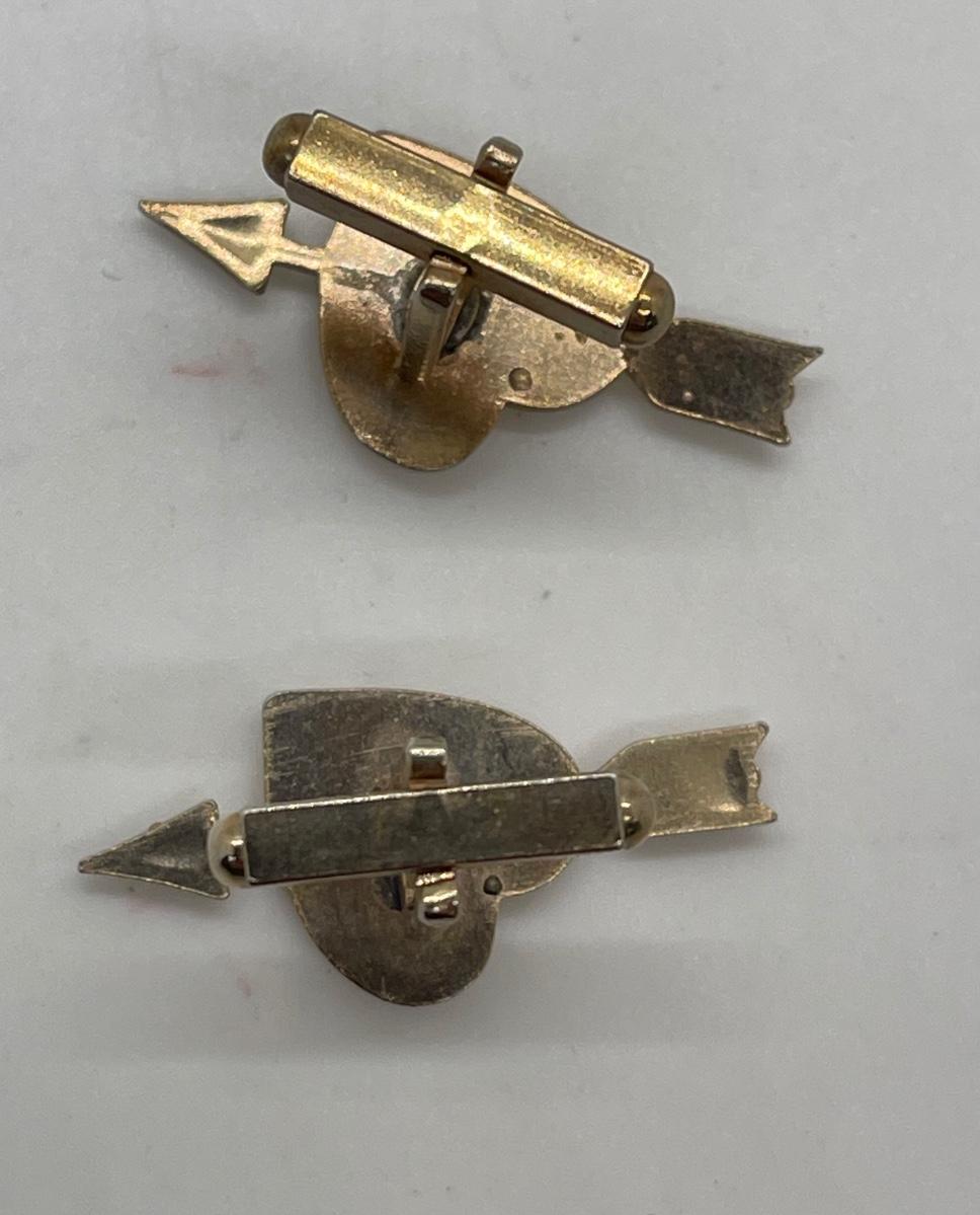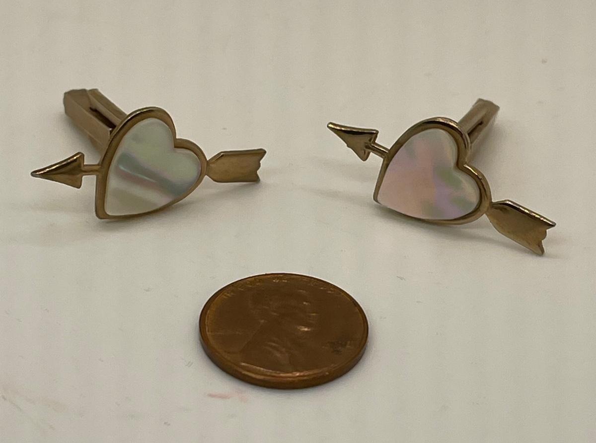 Heart with piercing arrow shaped cuff links with iridescint stones
