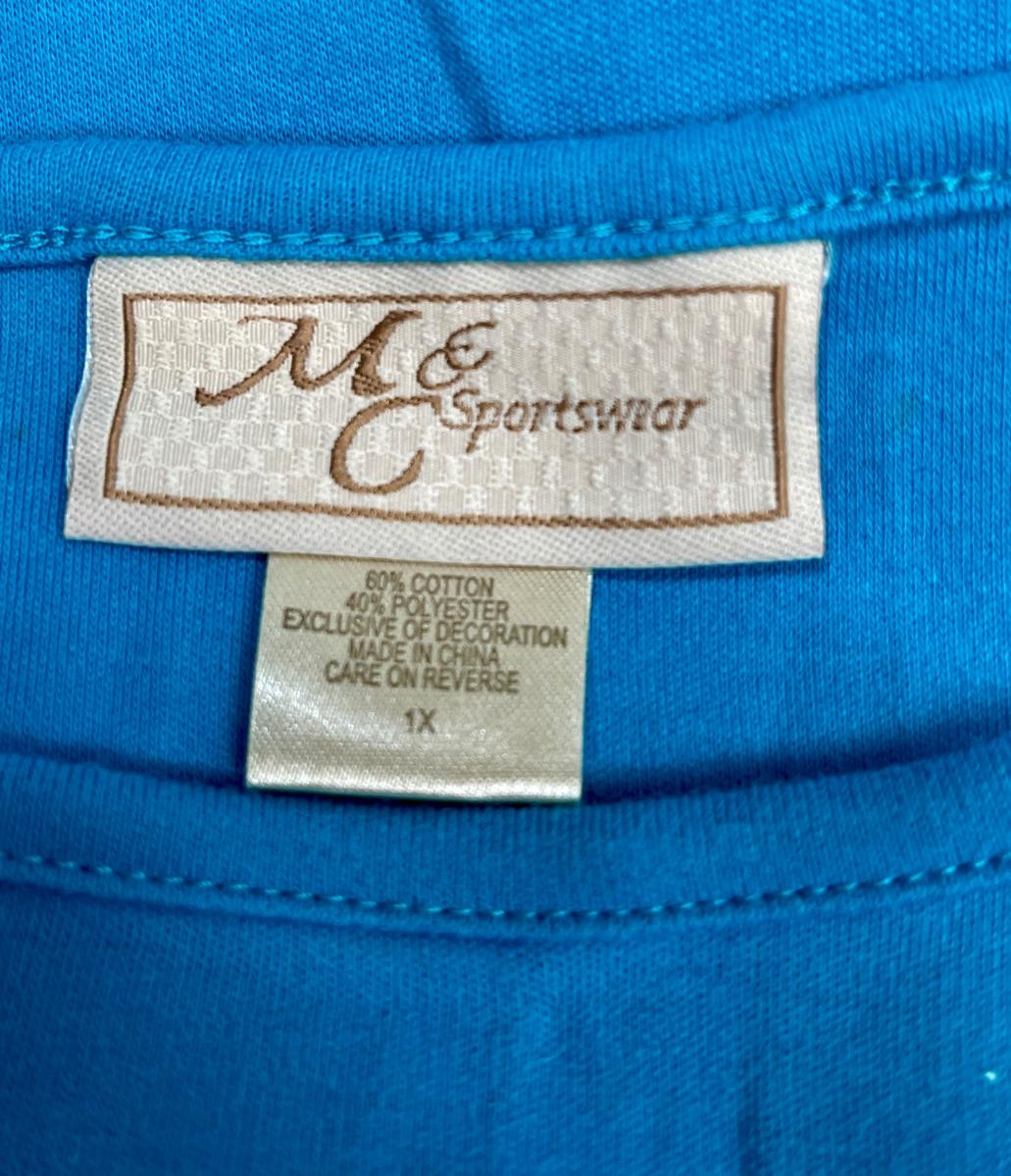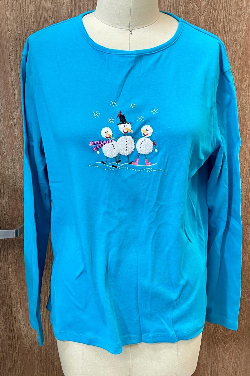 Women's Blue Long-Sleeve Snowman Christmas Shirt Size 1X